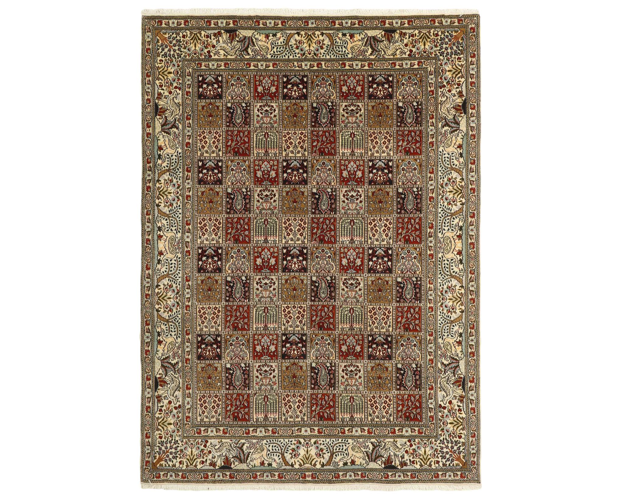 Moud Garden -matot ovat käsinsolmittuja villamattoja, joissa on puuvillinen loimi. Niiden kuviointi koostuu tyylitellystä puutarhakuvioista, jota kehystävät perinteiset persialaiset reunukset. Värimaailma on hillitty ja harmoninen, painottuen norsunluun, sinisen ja ruskean sävyihin. Solmutiheys on 250 000–350 000 solmua neliömetrillä. Käyttämätön.