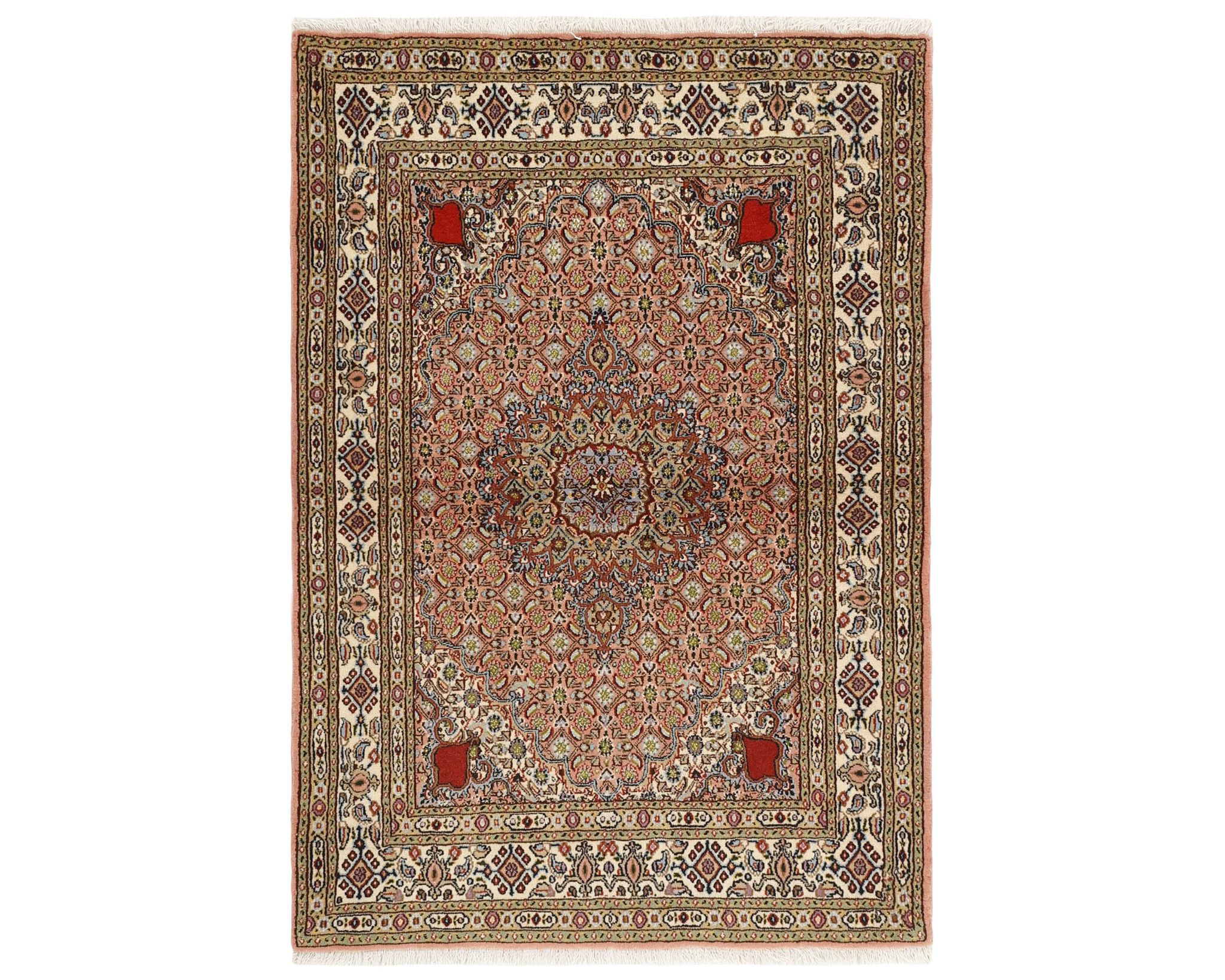 Moud Mahi -matot ovat käsinsolmittuja villamattoja, jotka valmistetaan Moudin kylässä Khorrasanin provinssissa. Kylän matot tunnetaan tasalaatuisuudestaan ja toistuvista Herati-kuvioistaan, ja joissakin malleissa esiintyy keskelle sijoittuva tähdenmuotoinen medaljonki. Väripaletti koostuu beigen, vaaleanpunaisen ja sinisen sävyistä, jotka antavat matoille jäsennellyn ja harmonisen ilmeen. Solmutiheys on 250 000–350 000 solmua neliömetrillä. Käyttämätön.