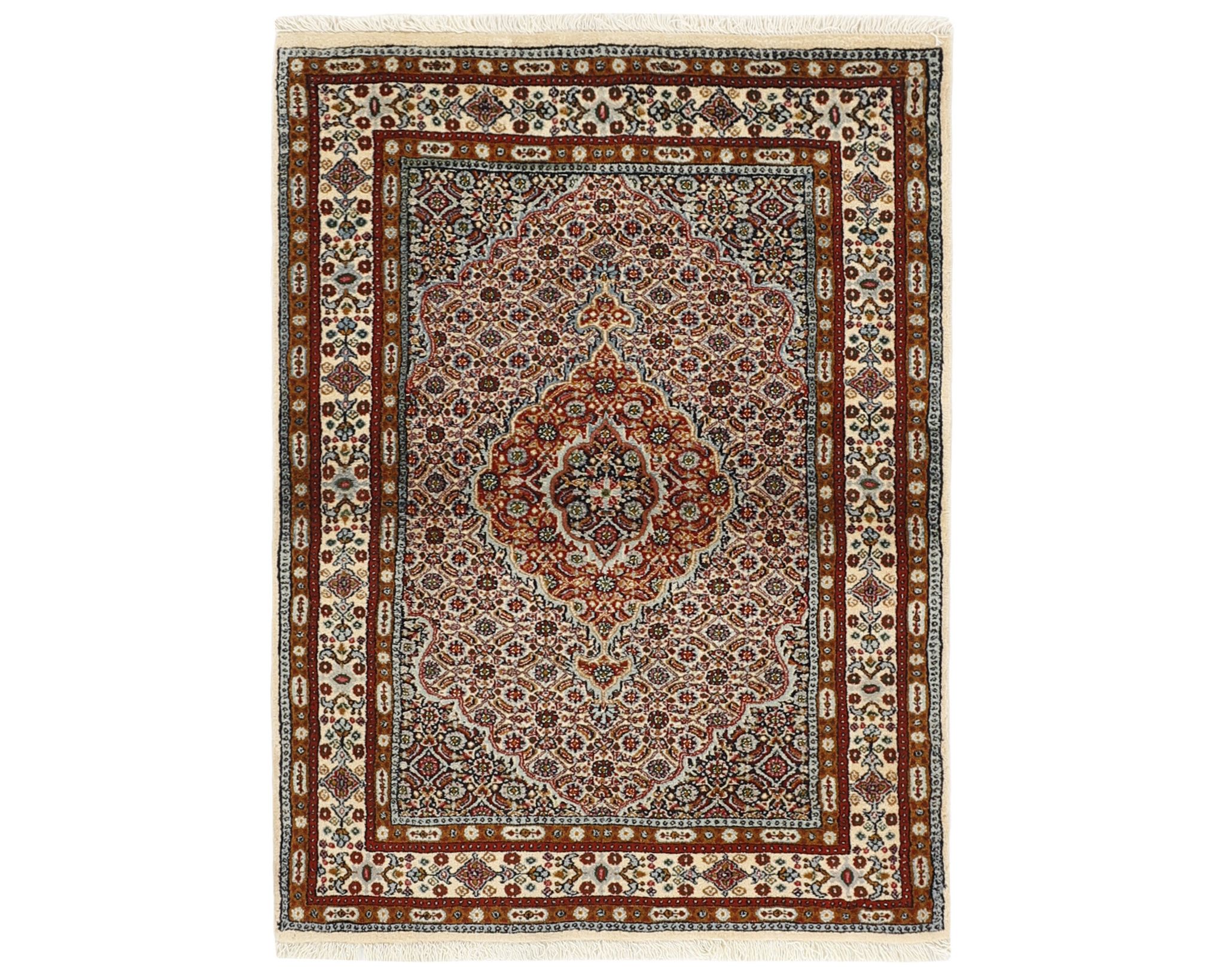Moud Mahi -matot ovat käsinsolmittuja villamattoja, jotka valmistetaan Moudin kylässä Khorrasanin provinssissa. Kylän matot tunnetaan tasalaatuisuudestaan ja toistuvista Herati-kuvioistaan, ja joissakin malleissa esiintyy keskelle sijoittuva tähdenmuotoinen medaljonki. Väripaletti koostuu beigen, vaaleanpunaisen ja sinisen sävyistä, jotka antavat matoille jäsennellyn ja harmonisen ilmeen. Solmutiheys on 250 000–350 000 solmua neliömetrillä. Käyttämätön.