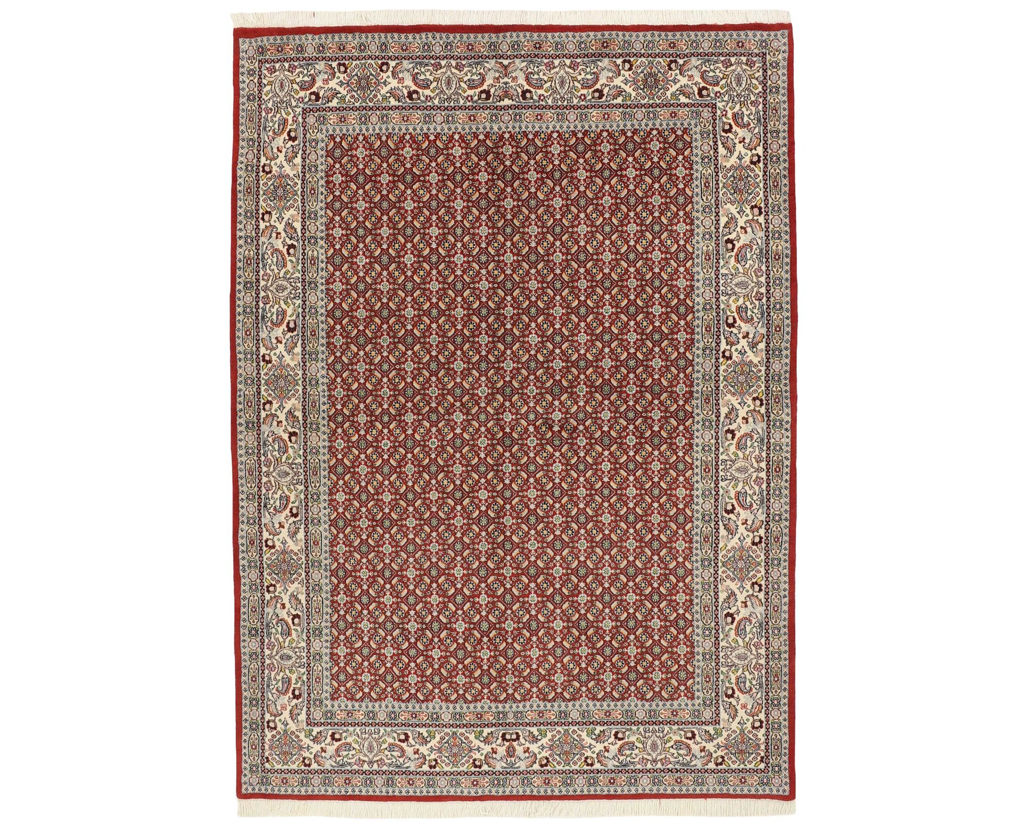 Moud Mahi -matot ovat käsinsolmittuja villamattoja, jotka valmistetaan Moudin kylässä Khorrasanin provinssissa. Kylän matot tunnetaan tasalaatuisuudestaan ja toistuvista Herati-kuvioistaan, ja joissakin malleissa esiintyy keskelle sijoittuva tähdenmuotoinen medaljonki. Väripaletti koostuu beigen, vaaleanpunaisen ja sinisen sävyistä, jotka antavat matoille jäsennellyn ja harmonisen ilmeen. Solmutiheys on 250 000–350 000 solmua neliömetrillä. Käyttämätön.