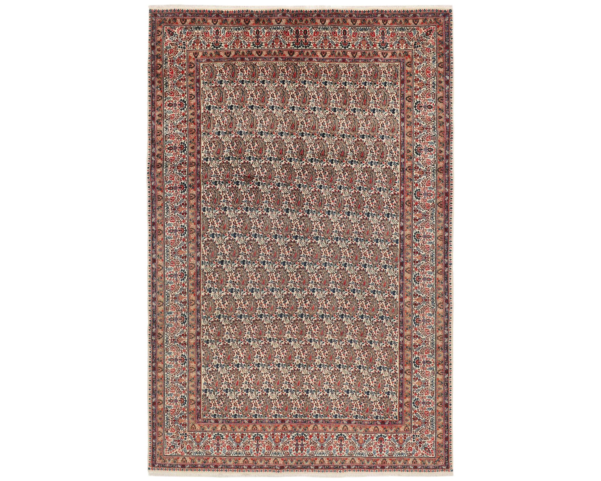 Moud Mahi -matot ovat käsinsolmittuja villamattoja, jotka valmistetaan Moudin kylässä Khorrasanin provinssissa. Kylän matot tunnetaan tasalaatuisuudestaan ja toistuvista Herati-kuvioistaan, ja joissakin malleissa esiintyy keskelle sijoittuva tähdenmuotoinen medaljonki. Väripaletti koostuu beigen, vaaleanpunaisen ja sinisen sävyistä, jotka antavat matoille jäsennellyn ja harmonisen ilmeen. Solmutiheys on 250 000–350 000 solmua neliömetrillä. Käyttämätön.