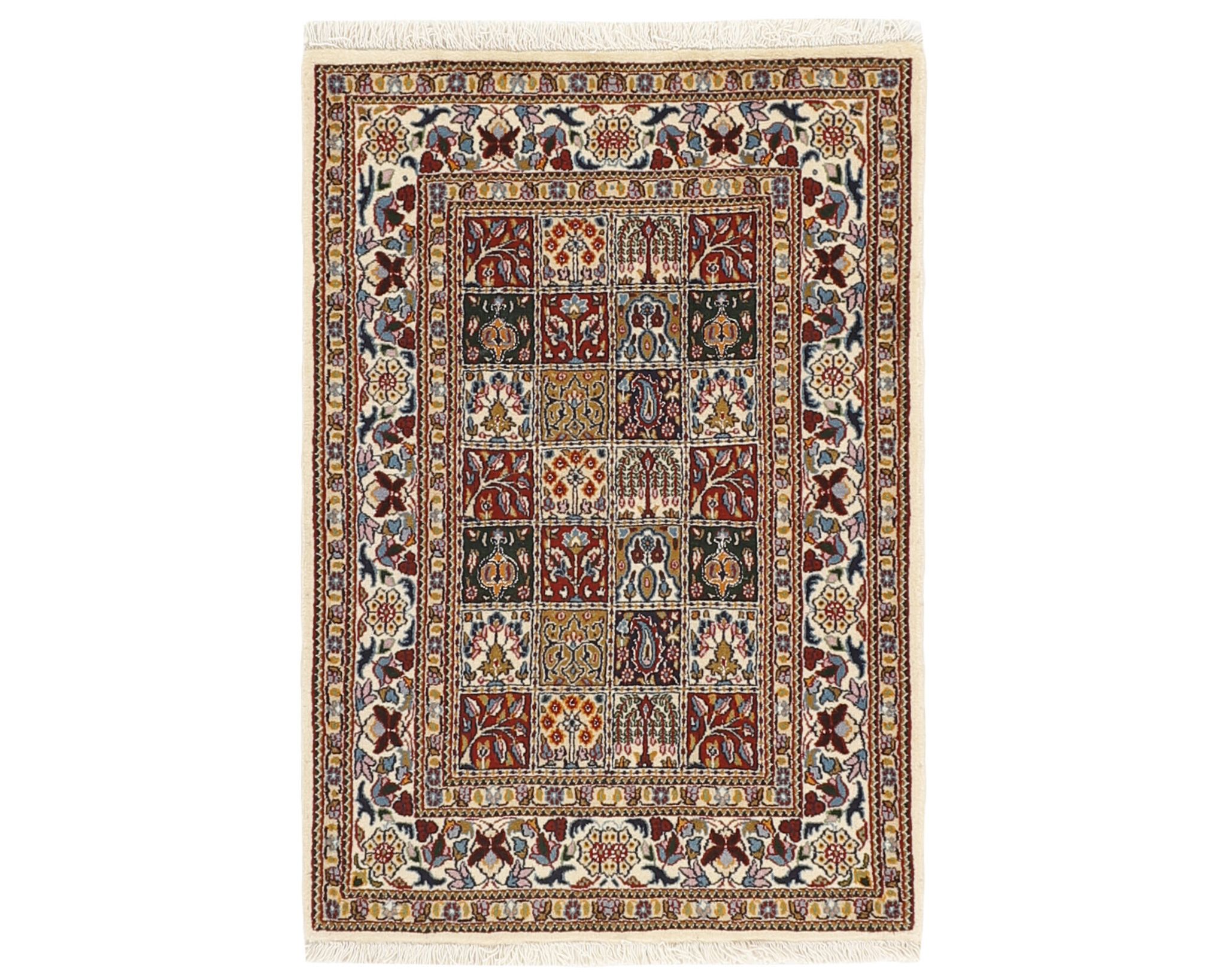 Moud Mahi -matot ovat käsinsolmittuja villamattoja, jotka valmistetaan Moudin kylässä Khorrasanin provinssissa. Kylän matot tunnetaan tasalaatuisuudestaan ja toistuvista Herati-kuvioistaan, ja joissakin malleissa esiintyy keskelle sijoittuva tähdenmuotoinen medaljonki. Väripaletti koostuu beigen, vaaleanpunaisen ja sinisen sävyistä, jotka antavat matoille jäsennellyn ja harmonisen ilmeen. Solmutiheys on 250 000–350 000 solmua neliömetrillä. Käyttämätön.