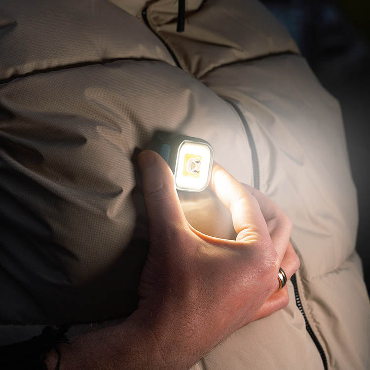 Tehokas valo treeniin ja vapaa-aikaanHellävarainen kiinnitys ei vahingoita vaatteita tai varusteitaKevyt, kompakti ja nopea ladataMeolinQ:n Light01 on monipuolinen ja tehokas valo, joka sopii täydellisesti retkeilyyn, patikointiin, kalastukseen, juoksuun ja muihin ulkoiluaktiviteetteihin, joissa tarvitset liikkumisvapautta ja luotettavaa valaistusta. Ruotsalaisen kiinnitystekniikan ansiosta lamppu voidaan kiinnittää nopeasti ja turvallisesti suoraan kankaaseen vahingoittamatta vaatteita, reppuja tai muita varusteita. Myös takaosa on magneettinen ja se on helppo kiinnittää metallipintoihin.Lumeotechin patentoima kiinnitystekniikkaMonitoimivalossa käytetään teräslankajärjestelmää, joka toimii väliaikaisena saumana. Näin lamppu voidaan kiinnittää nopeasti ja turvallisesti vahingoittamatta tai jättämättä jälkiä tekstiileihin tai laitteisiin. Teknologian on kehittänyt ruotsalainen innovaatioyritys Lumeotech, ja se on patentoitu, mikä takaa ainutlaatuisen ja patentoidun ratkaisun monikäyttöiseen valaistukseen erilaisissa ympäristöissä.Kiinnitä lamppu painamalla sitä kangasta vasten niin, että kaikki viisi teräslankaa koskettavat materiaalia (ohuiden kankaiden kohdalla: vedä kangasta varovasti irti kehosta ennen lampun kiinnittämistä). Käännä sitten salpaa kangasta kohti ja jatka kääntämistä, kunnes se on kiinnitysasennossa. Käännä salpa takaisin alkuperäiseen asentoonsa, kun haluat vapauttaa lampun – vältä lampun samanaikaista vetämistä, sillä se voi vahingoittaa sekä kiinnikettä että kangasta.500 lumenia – vaikuttava kantamaKompaktista koostaan huolimatta monitoimilamppu tuottaa täydet 500 lumenia ja valaisee jopa 100 metrin päähän edessäsi. Tämä tekee valaisimesta täydellisen sekä kaupunkiympäristöön että metsiin ja pelloille. Voimakas valotehoste varmistaa, että näet ja että sinut nähdään pimeässä.Useita valotiloja kaikkiin tilanteisiinMonitoimilamppu tarjoaa sekä kylmää että lämmintä valoa monipuoliseen valaistukseen retkeillessä, patikoidessa tai muissa ulkoiluaktiviteeteissa. Kohdennettu säde 18° valokulmassa tarjoaa pitkän kantaman, kun taas leveämpi 120° yleiskuvavalo tarjoaa hyvän yleiskuvan pimeissä ulkoympäristöissä. Lamppu myös yhdistää tehokkaasti suunnatun ja laajan valon. Lisäksi siinä on kolme punaista valotilaa: tasainen, vilkkuva ja SOS-signaali näkyvyyden parantamiseksi ja hätätilanteisiin.Portaaton kirkkauden säätöVoit mukauttaa valaistusta entisestään säätämällä lampun kirkkautta portaattomasti välillä 1–100 %. Pidä miinus- tai plus-painiketta painettuna kolmen sekunnin ajan lisätäksesi tai vähentääksesi kirkkautta.Nopea ja kätevä lataus USB-C:n kauttaAkku kestää jopa 30 tuntia käyttämästäsi valotilasta riippuen, ja lataus kestää vain 30–60 minuuttia USB-C-portin kautta. Akun varaustaso näytetään jatkuvasti neljällä yläosassa olevalla ilmaisimella, jotka tarjoavat selkeän yleiskuvan: 70–100 %, 30–70 %, 1–30 % ja 0 %, kun akku on täysin tyhjä.Ruotsalainen innovaatioMeolinQ Light01 on kehitetty Ruotsissa keskipisteenä toimivuus, kestävyys ja käyttäjäystävällisyys. Lumeotechin patentoitu kiinnitysmekanismi ja huolella suunniteltu muotoilu tekevät valaisimesta luotettavan työkalun niin arkeen kuin ulkoiluunkin.Tekniset tiedotPaino: 32 gVäri: Musta, keltainen, sininenPituus: 4,2 cmLeveys: 4,2 cmKorkeus: 2,2 cmMaksimikirkkaus: 500 lumeniaKirkkauden säätö: Portaaton 1–100 %Akun tyyppi: 500 mAh ladattava litiumioniakku (latauskaapeli sisältyy pakkaukseen)Kirkkaustasot: 6Akunkesto: 3–30 tuntia tilasta riippuenLatausaika: 30–60 minuuttiaValokulma: Yleiskuvavalo 120°, kohdennettu valo 18°Kantama: Jopa 100 metriäVedenkestävyys: IPX4, roiskevesitiivisMagneettinen takaosa: Kyllä, N52-neodyymimagneetillaMäärä per pakkaus: 1Ruotsalaiset innovaattorit: Leo Wu ja John Holmgren