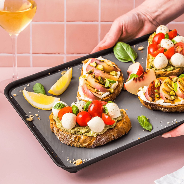 Käytä päällipuolta tarjoilualustanaAlapuoli puolestaan kerää nesteen ja murusetTukeva muovinen leikkuulauta, joka voidaan pestä astianpesukoneessaFledge on kaksipuolinen muovinen leikkuulauta, jossa on taitettavat reunat. Niiden ansiosta ruoanvalmistus, leivän leikkaaminen ja hedelmien mehun talteenottaminen on helpompaa. Muovista leikkuulautaa voidaan käyttää kaikentyyppisiin ruokiin. Molemmilla puolilla on omat ominaisuutensa.Leikkaa päällipuolellaKun olet leikannut jotain leikkuulaudan päälle, voit taittaa reunat ylöspäin. Reunat estävät ruokaa putoamasta laudalta.Leikkaa alapuolellaAlapuoli on kätevä lihan, leivän tai hedelmien leikkaamiseen. Nesteet ja leivänmurut nimittäin jäävät reunojen syvennyksiin. Näin keittiön taso pysyy puhtaana, ja nesteen ja muruset saa talteen tarvittaessa.Pysyy tukevasti keittiön tasollaMuovisen leikkuulaudan kuviointi tekee leikkaamisesta helpompaa. Päälliosan reunat ja alaosan kumijalat varmistavat, että leikkuulauta lepää tukevasti keittiötasolla riippumatta siitä, kumpaa puolta käytät.Helppo puhdistaaLeikkuulauta on helppo puhdistaa. Taita reunat alas puhdistaaksesi laudan ja laita se sen jälkeen tiskikoneeseen.Saatavilla kahdessa koossaFledge on australialaisen Dreamfarm-yrityksen suunnittelema. Fledgeä on saatavana kahdessa eri koossa. Nimi on lyhenne sanoista flip edge cutting board.SmallLeikkuupinta, päällipuoli: 23 cm x 15,5 cmLeikkuupinta, alapuoli: 22,4 cm x 15 cmKorkeus: 1,3 cmPaino: n. 480 gMateriaali: PolypropeeniLargeyläpuoli: 33,3 cm x 23 cmAlapuoli: 32,5 cm x 22,3 cmKorkeus: 1,3 cmPaino: n. 900 gMateriaali: Polypropeeni
