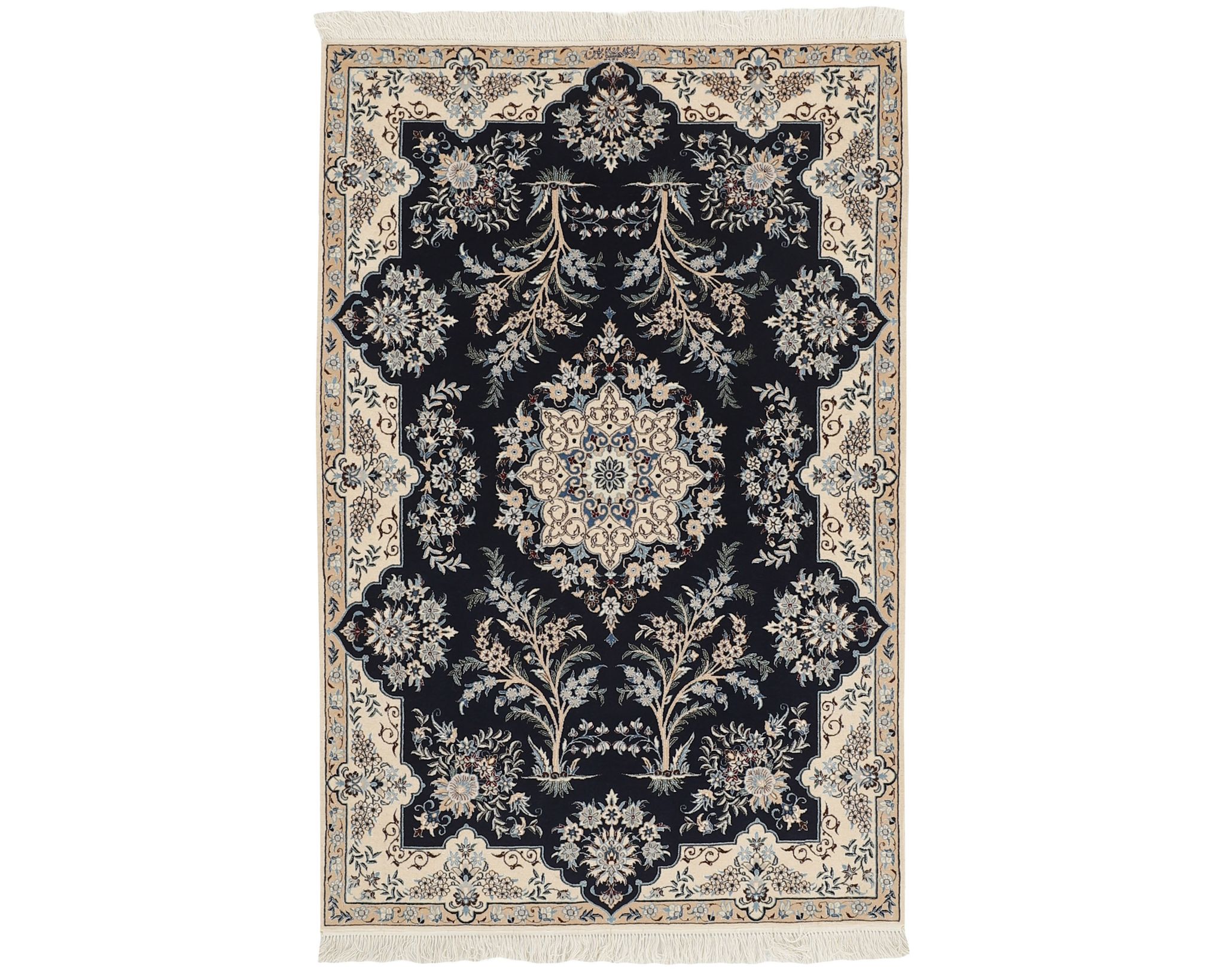 Nain 6 la -matot edustavat Nain-mattojen korkeinta laatuluokkaa. Ne valmistetaan villan ja silkin sekoitteesta, mikä luo pinnan, joka on poikkeuksellisen hieno ja yksityiskohtainen. Klassiset kuviot, silkkilangan korostamat ääriviivat ja hillitty värimaailma antavat matoille erittäin elegantin ja viimeistellyn ilmeen. Solmutiheys on 850 000–950 000 solmua neliömetrillä, mikä tekee matoista sileitä, tiiviitä ja poikkeuksellisen kestäviä. Käyttämätön.