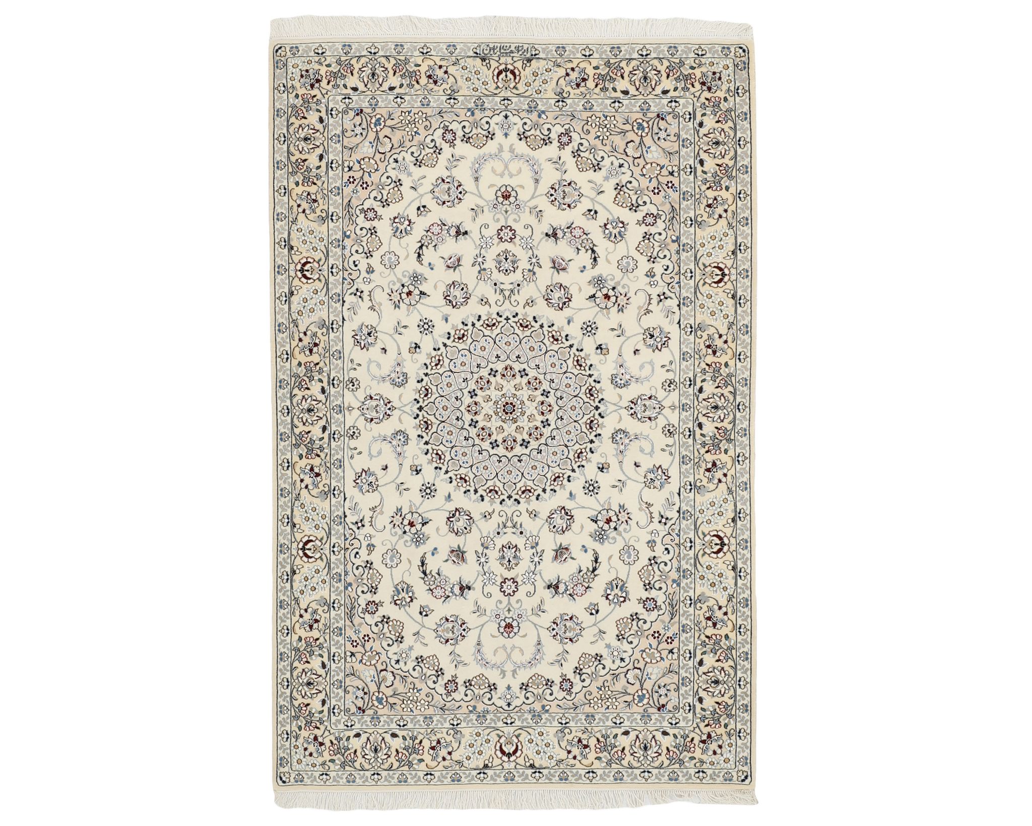 Nain 6 la -matot edustavat Nain-mattojen korkeinta laatuluokkaa. Ne valmistetaan villan ja silkin sekoitteesta, mikä luo pinnan, joka on poikkeuksellisen hieno ja yksityiskohtainen. Klassiset kuviot, silkkilangan korostamat ääriviivat ja hillitty värimaailma antavat matoille erittäin elegantin ja viimeistellyn ilmeen. Solmutiheys on 850 000–950 000 solmua neliömetrillä, mikä tekee matoista sileitä, tiiviitä ja poikkeuksellisen kestäviä. Käyttämätön.