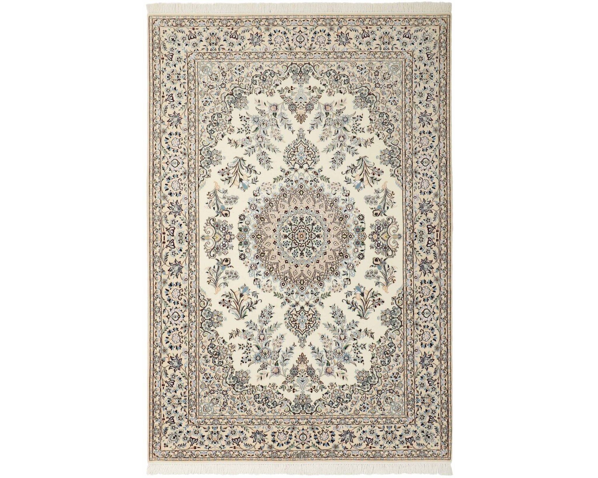 Nain 6 la -matot edustavat Nain-mattojen korkeinta laatuluokkaa. Ne valmistetaan villan ja silkin sekoitteesta, mikä luo pinnan, joka on poikkeuksellisen hieno ja yksityiskohtainen. Klassiset kuviot, silkkilangan korostamat ääriviivat ja hillitty värimaailma antavat matoille erittäin elegantin ja viimeistellyn ilmeen. Solmutiheys on 850 000–950 000 solmua neliömetrillä, mikä tekee matoista sileitä, tiiviitä ja poikkeuksellisen kestäviä. Käyttämätön.