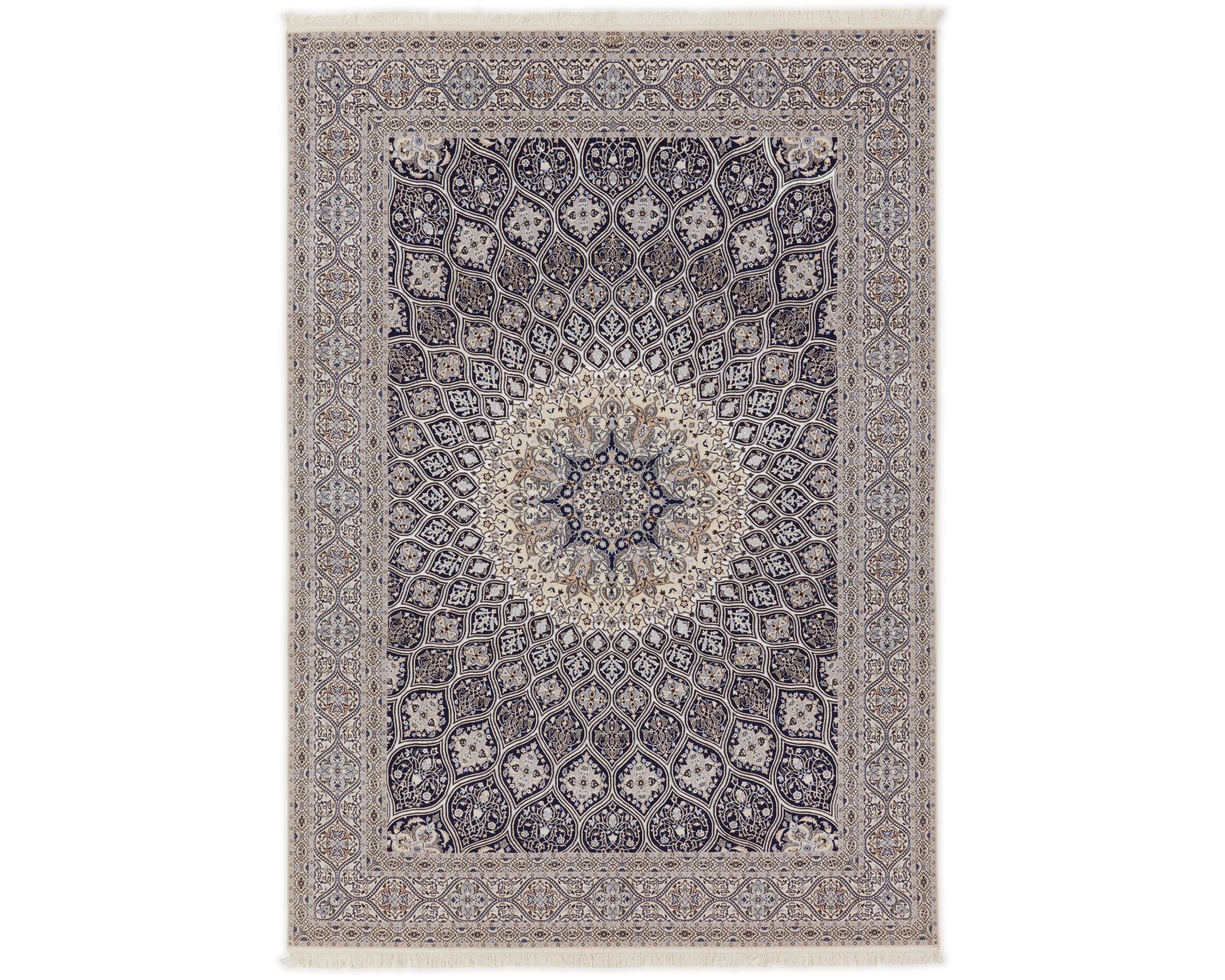 Nain 6 la -matot edustavat Nain-mattojen korkeinta laatuluokkaa. Ne valmistetaan villan ja silkin sekoitteesta, mikä luo pinnan, joka on poikkeuksellisen hieno ja yksityiskohtainen. Klassiset kuviot, silkkilangan korostamat ääriviivat ja hillitty värimaailma antavat matoille erittäin elegantin ja viimeistellyn ilmeen. Solmutiheys on 850 000–950 000 solmua neliömetrillä, mikä tekee matoista sileitä, tiiviitä ja poikkeuksellisen kestäviä. Käyttämätön.