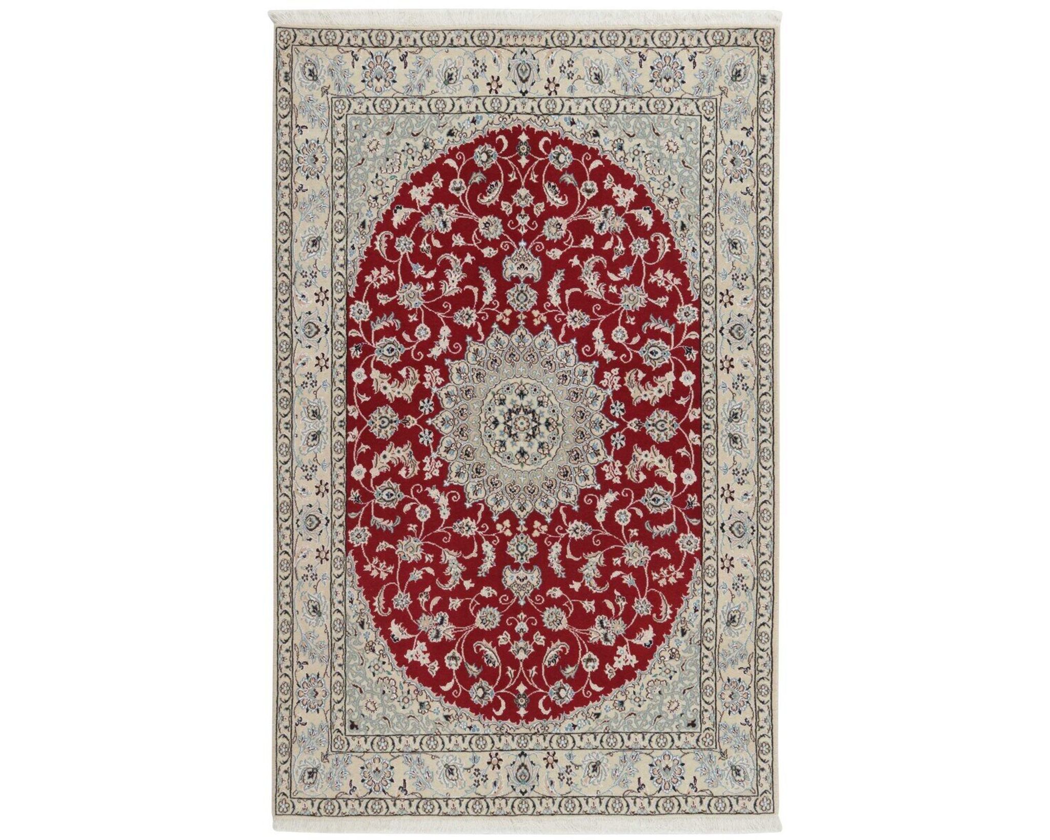 Nain 9 la -matot ovat käsinsolmittuja villa-silkkimattoja. Silkki antaa matoille niiden tunnusomaisen, elegantin ilmeen: se lisää pintaan kaunista kiiltoa ja syvyyttä sekä korostaa kuvioiden hienoja yksityiskohtia. Klassinen kuviointi ja hillitty väripaletti painottuvat norsunluun ja beigen sävyihin, joita täydentävät hienovaraiset punaisen, vihreän ja sinisen vivahteet. Matot valmistetaan Nainissa Iranissa, ja niiden solmutiheys on 350 000–450 000 solmua neliömetrillä. Käyttämätön.