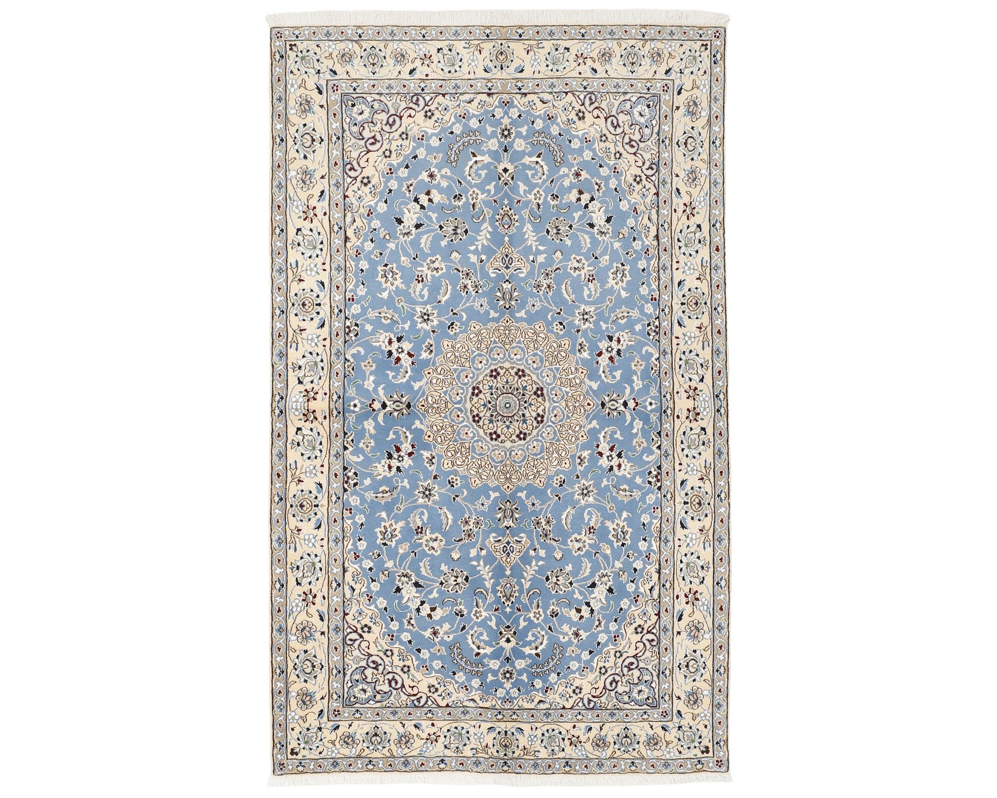 Nain 9 la -matot ovat käsinsolmittuja villa-silkkimattoja. Silkki antaa matoille niiden tunnusomaisen, elegantin ilmeen: se lisää pintaan kaunista kiiltoa ja syvyyttä sekä korostaa kuvioiden hienoja yksityiskohtia. Klassinen kuviointi ja hillitty väripaletti painottuvat norsunluun ja beigen sävyihin, joita täydentävät hienovaraiset punaisen, vihreän ja sinisen vivahteet. Matot valmistetaan Nainissa Iranissa, ja niiden solmutiheys on 350 000–450 000 solmua neliömetrillä. Käyttämätön.