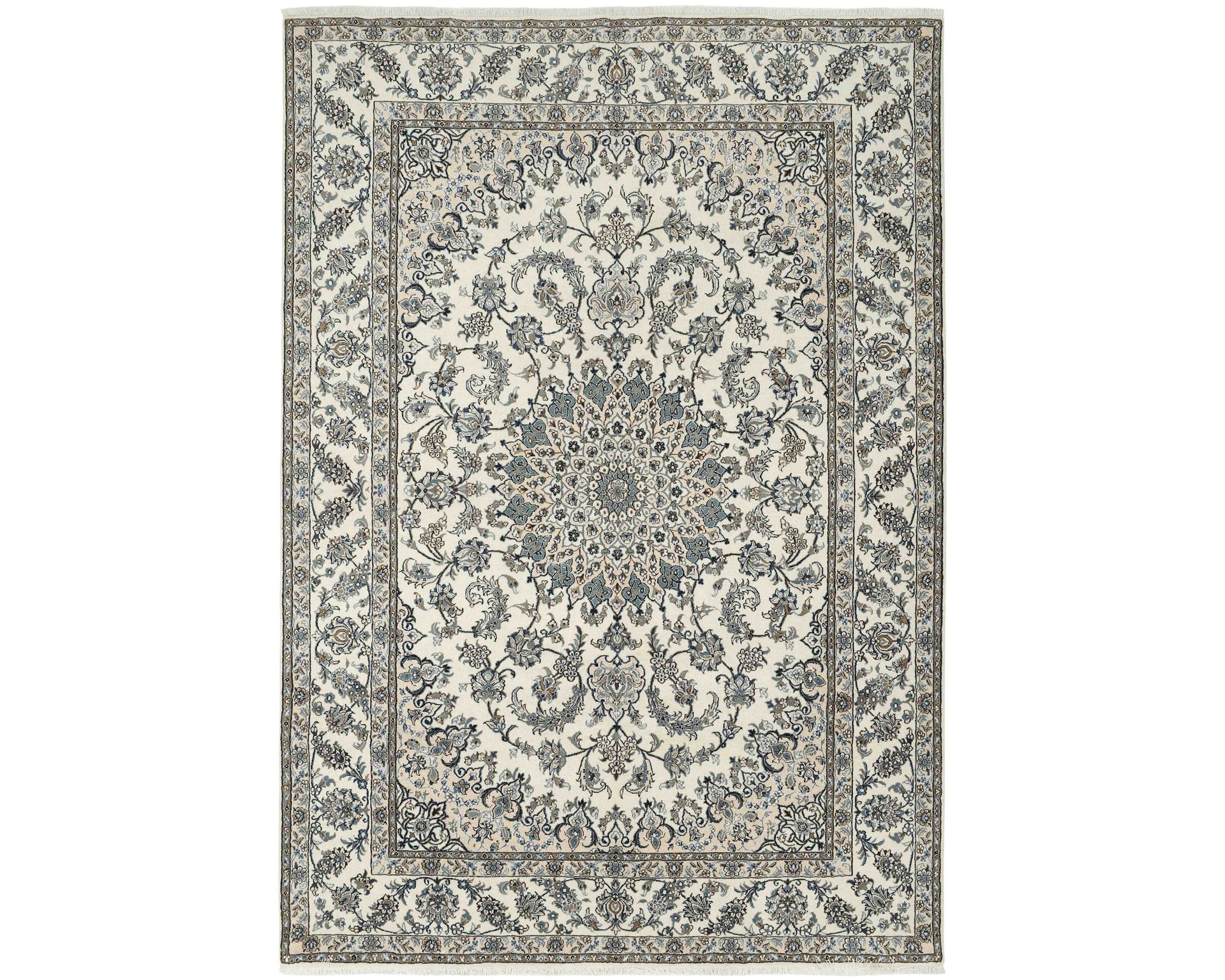 Nain Kashmar -matot edustavat klassista Nain-tyyliä, mutta hieman karkeammalla rakenteella. Matot solmitaan käsin villasta, ja niissä on puuvillaloimi. Värimaailma rakentuu valkoisen ja beigen sävyjen ympärille, joita täydentävät hienovaraiset punaisen, vihreän ja sinisen sävyt. Solmutiheys on 150 000–250 000 solmua neliömetrillä, mikä tekee pinnasta kestävän ja selkeän yksityiskohtaisen. Käyttämätön.
