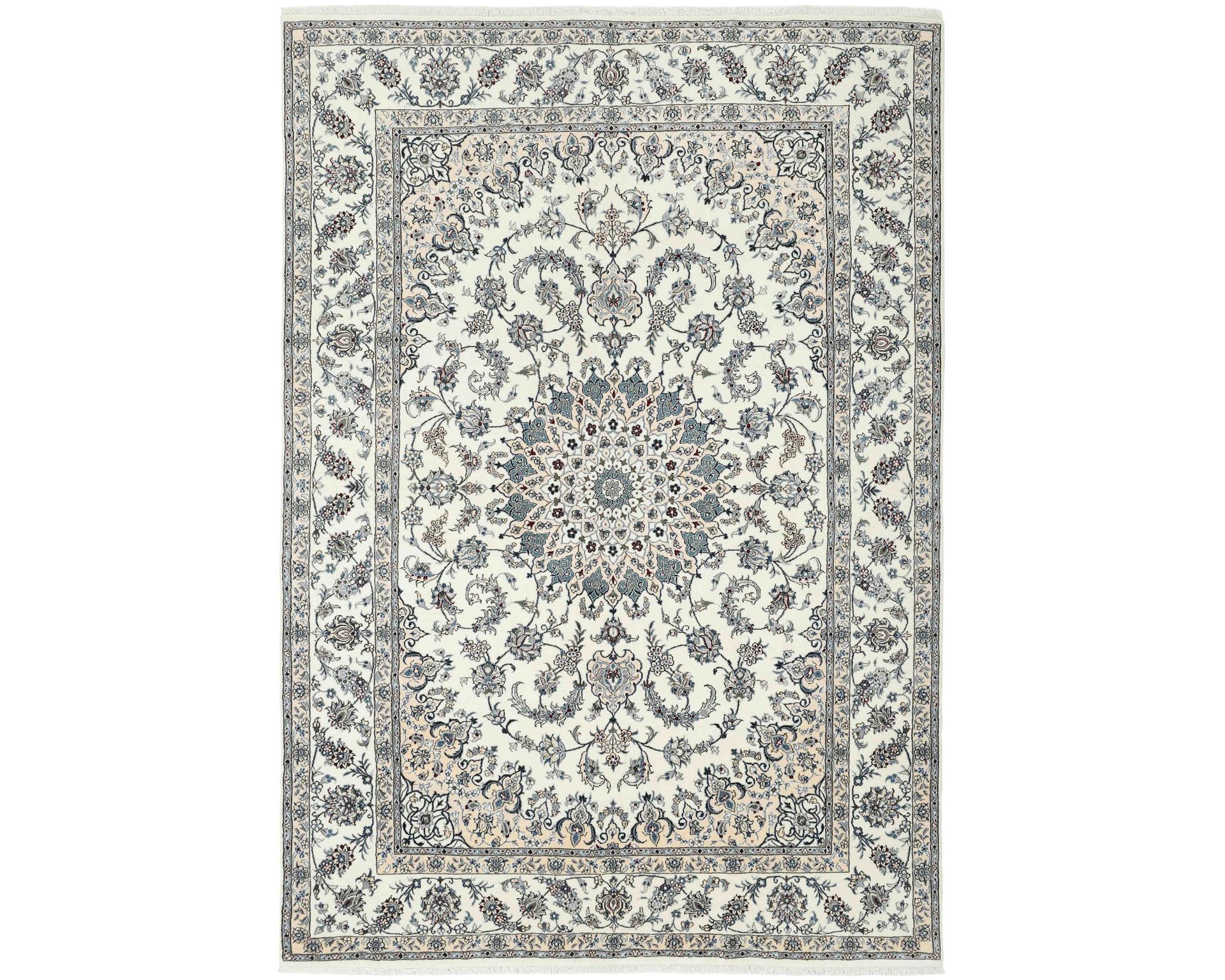 Nain Kashmar -matot edustavat klassista Nain-tyyliä, mutta hieman karkeammalla rakenteella. Matot solmitaan käsin villasta, ja niissä on puuvillaloimi. Värimaailma rakentuu valkoisen ja beigen sävyjen ympärille, joita täydentävät hienovaraiset punaisen, vihreän ja sinisen sävyt. Solmutiheys on 150 000–250 000 solmua neliömetrillä, mikä tekee pinnasta kestävän ja selkeän yksityiskohtaisen. Käyttämätön.