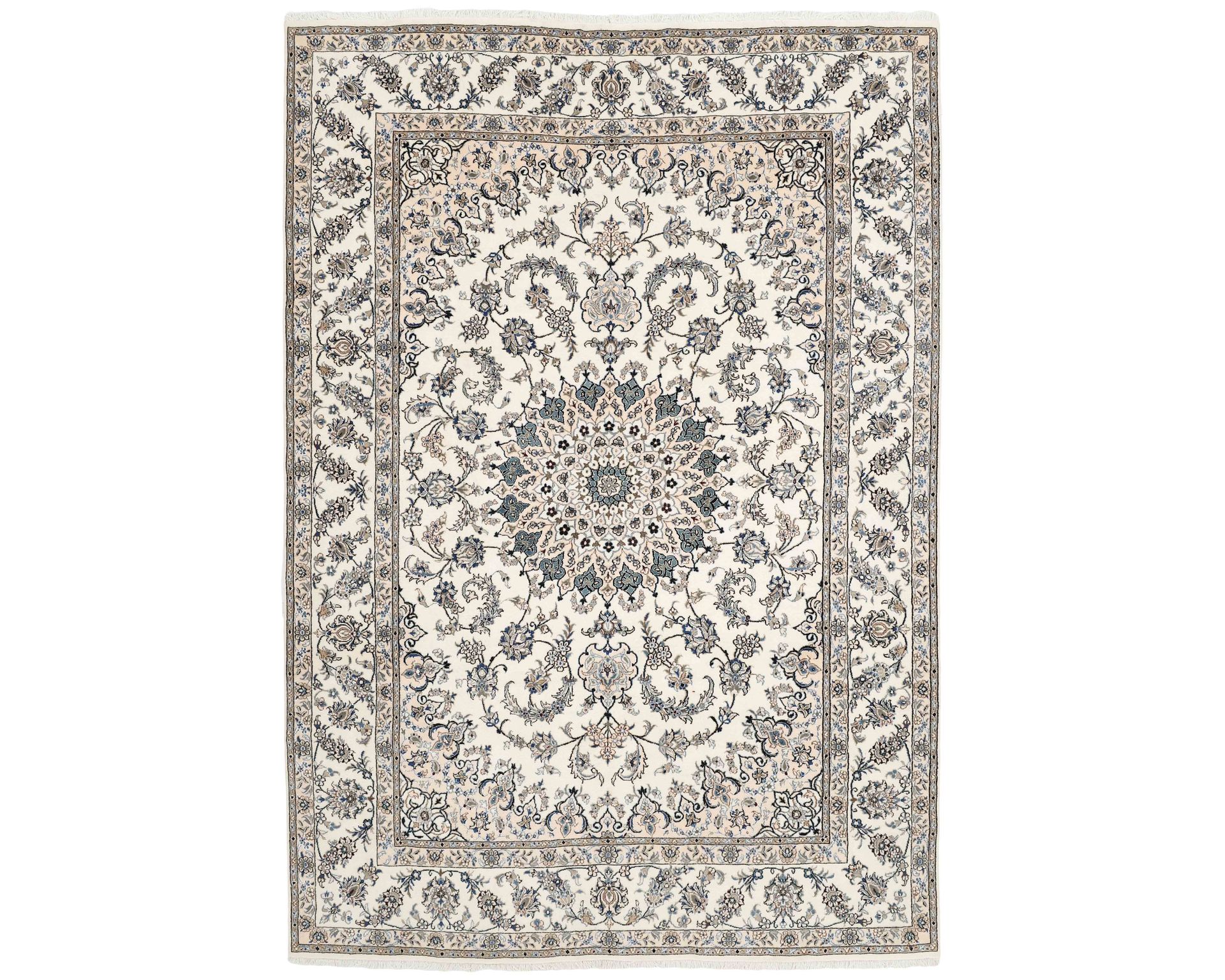 Nain Kashmar -matot edustavat klassista Nain-tyyliä, mutta hieman karkeammalla rakenteella. Matot solmitaan käsin villasta, ja niissä on puuvillaloimi. Värimaailma rakentuu valkoisen ja beigen sävyjen ympärille, joita täydentävät hienovaraiset punaisen, vihreän ja sinisen sävyt. Solmutiheys on 150 000–250 000 solmua neliömetrillä, mikä tekee pinnasta kestävän ja selkeän yksityiskohtaisen. Käyttämätön.
