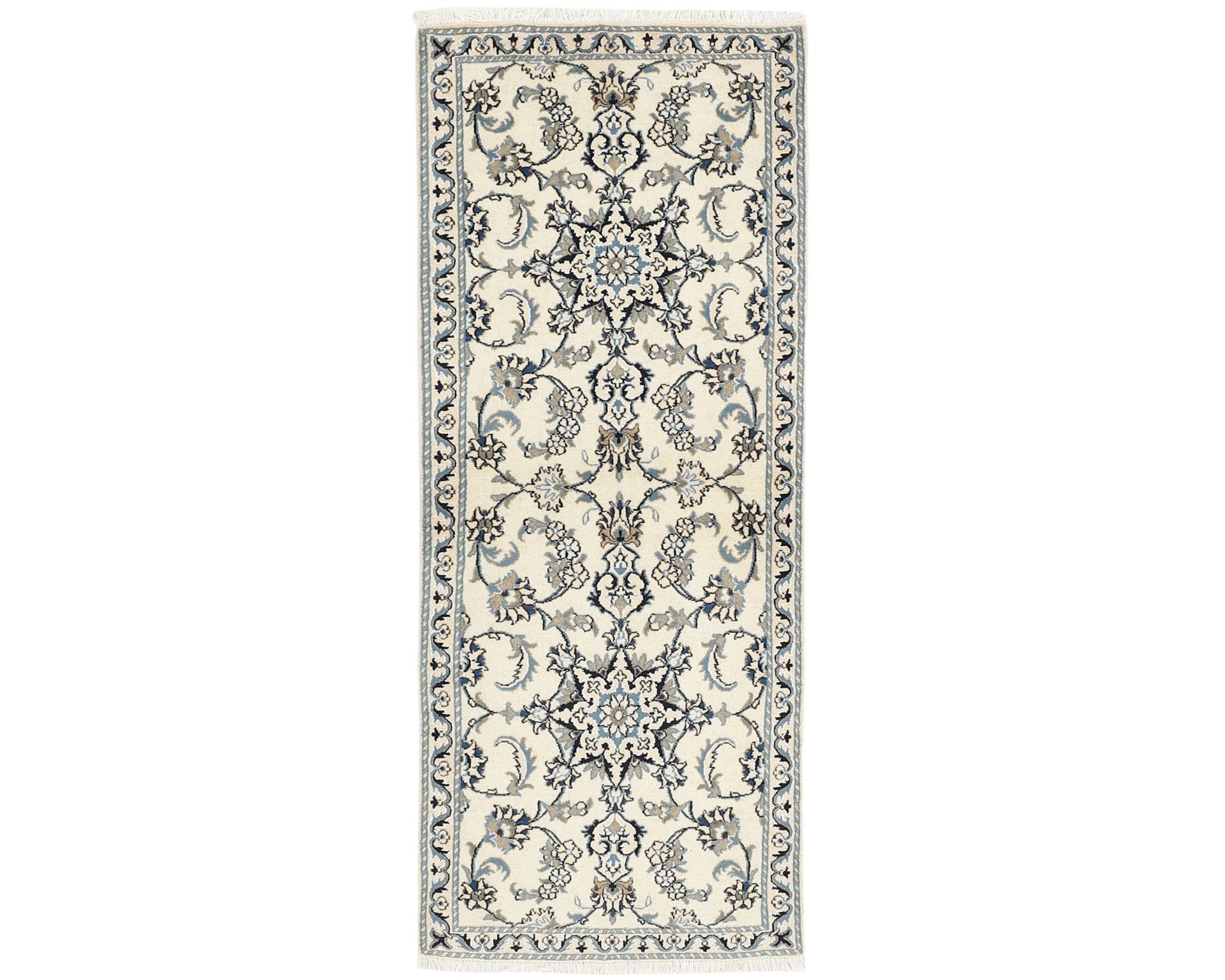 Nain Kashmar -matot edustavat klassista Nain-tyyliä, mutta hieman karkeammalla rakenteella. Matot solmitaan käsin villasta, ja niissä on puuvillaloimi. Värimaailma rakentuu valkoisen ja beigen sävyjen ympärille, joita täydentävät hienovaraiset punaisen, vihreän ja sinisen sävyt. Solmutiheys on 150 000–250 000 solmua neliömetrillä, mikä tekee pinnasta kestävän ja selkeän yksityiskohtaisen. Käyttämätön.