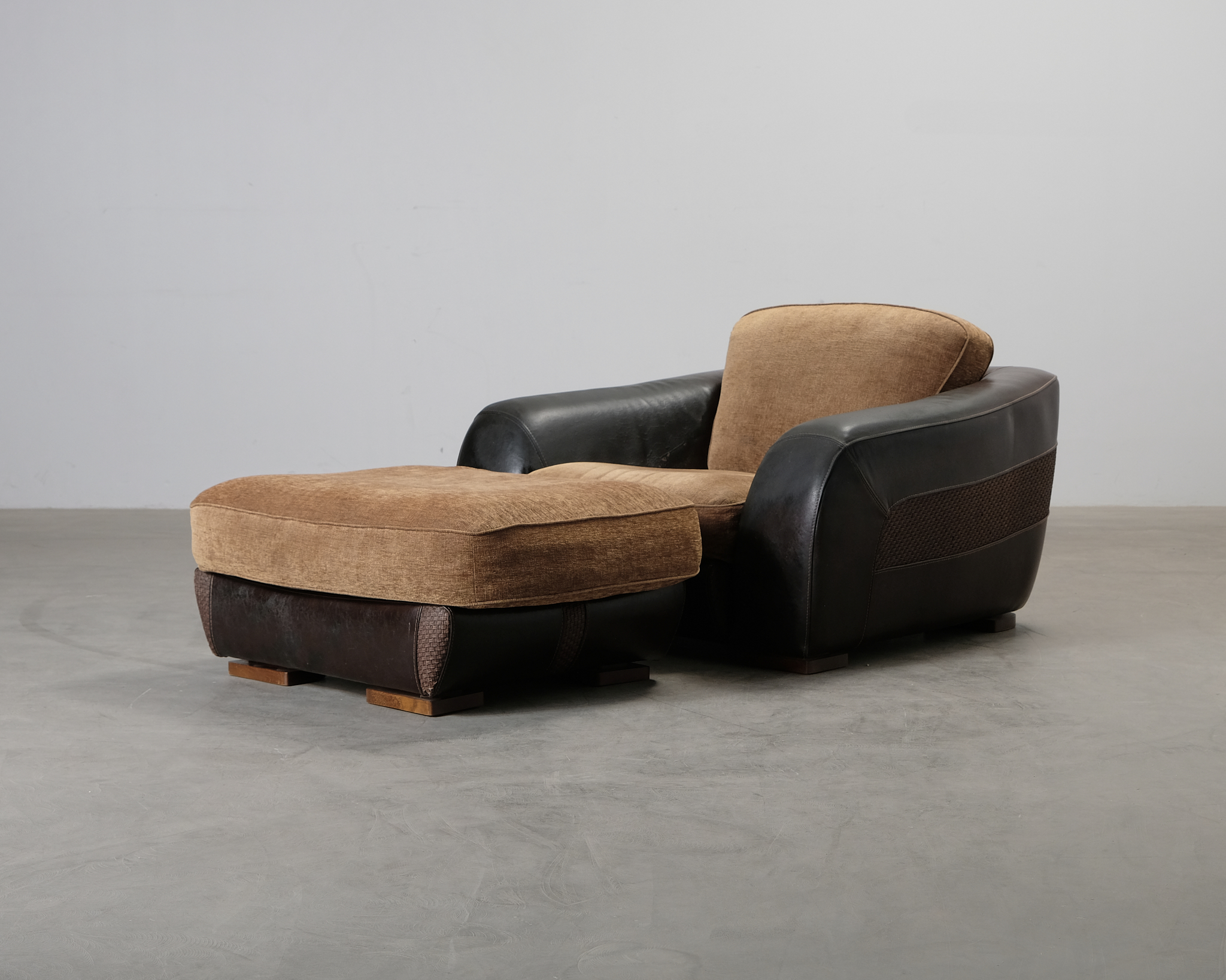 Neiserin valmistama muhkea ja ihanan rento nojatuoli, joka tarjoaa erinomaista istuinmukavuutta. Mukana tulee myös runsaan kokoinen rahi, jonka avulla saat jalat suoraksi tai voit käyttää sitä kätevänä lisäistuimena. Kulumaa, naarmuja ja verhoilussa pintavaurioita. Ei varmuutta onko verhoilu nahkaa vai tekonahkaa.
