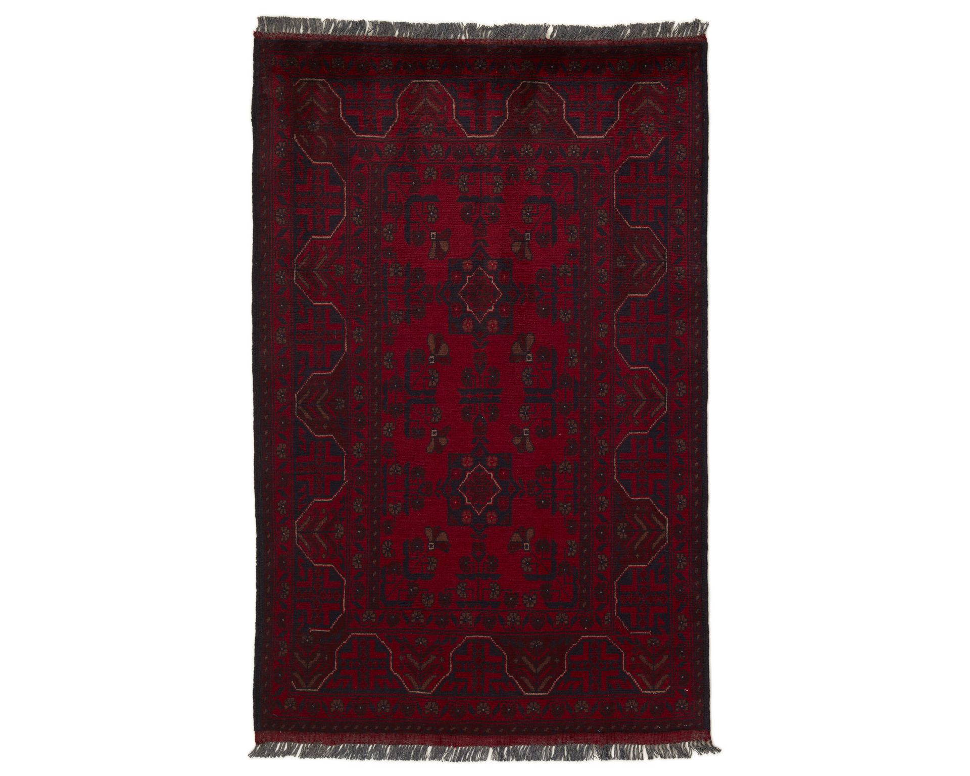 Old Afghan -matot ovat käsinsolmittuja villamattoja, joille on ominaista lämpimän punainen pohjaväri sekä tummansiniset ja vaaleat yksityiskohdat. Melko korkea ja napakka nukka sisältää usein myös vuohen- ja hevosenkarvaa, mikä antaa pinnalle jämäkän tuntuman. Perinteiset Gül-kuviot ja seneh-solminta luovat mattoihin rytmikkään ilmeen. Solmutiheys vaihtelee 150 000–250 000 solmun välillä neliömetrillä. Käyttämätön.