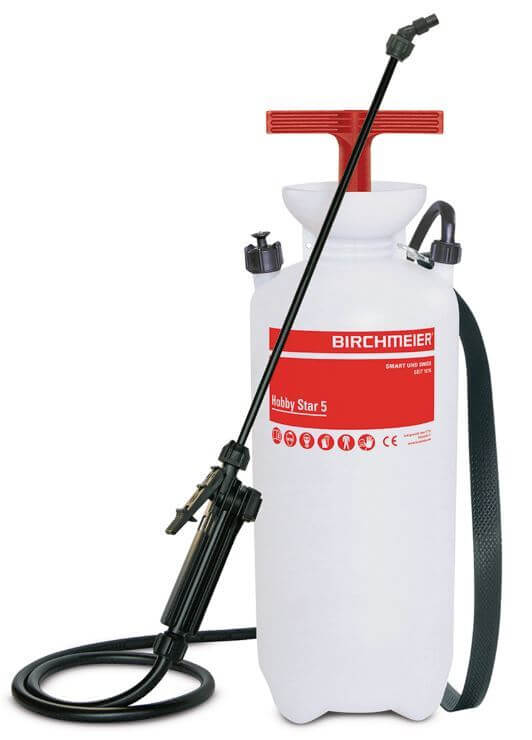 Birchmeier Hobby Star 5 paineruiskupullo / sumutinpullo Erinomaisella hinta-laatu-suhteella oleva Birchmeierin paineruiskupullo puutarhakäyttöön. Harrastelijapuutarhureille tarkoitetussa sumutinpullossa on pitkävartinen painekahva, joka mahdollistaa suihkutuksen ergonomisessa työasennossa. Paineruiskupullo soveltuu erilaisten kasvinsuojeluaineiden ja kasviravinteiden ruiskutukseen. Sumutinpullo ei sovellu käytettäväksi syövyttävillä aineilla. - Säädettävä suutin: 1,3 mm (muovia) - Kokonaistilavuus: 7,5 l - Täyttötilavuus: 5 l - Työpaine: enintään 3 bar - Letkun pituus: 1,5 m - Painekahvan pituus: 0,50 m - Mitat: 530 x 180 x 180 mm - Paino: 1,6 kg