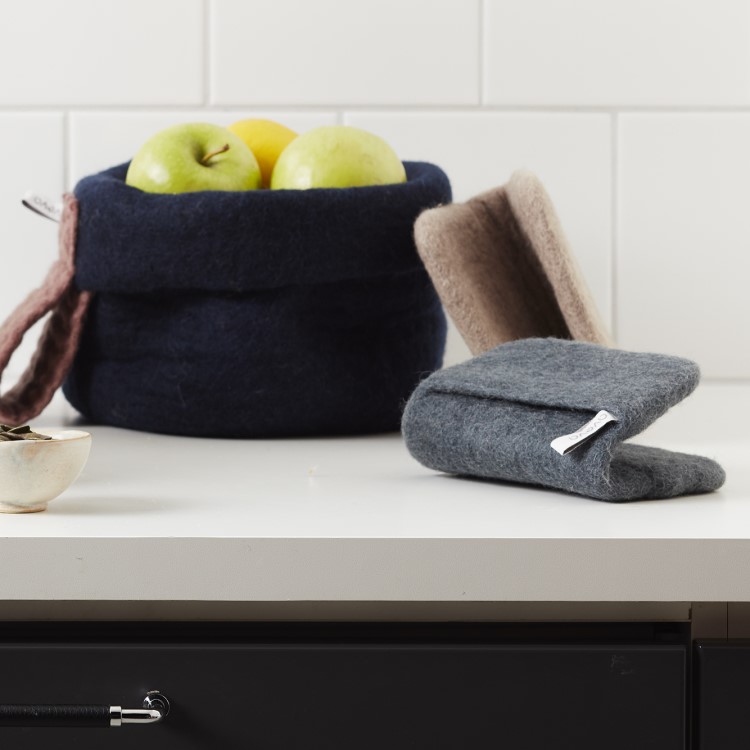 Lämpöä eristävää villaaKulutusta kestävä ja likaa hylkivä100 % villaaKäsintehty patalappu, joka on 100 % villaa. Patalapussa on kätevät taskut sormille, joiden ansiosta saat paremman otteen ja voit vaivatta käsitellä lämpimpiä kattiloita, uunipeltejä ja paistinpannuja. Patalappu kestää kulutusta, eristää lämpöä ja hylkii likaa. Saatavana useassa eri värissä.Käsintehty, 100 % villaaPatalappu on 100 % villaa ja värjätty AZO-vapailla väriaineilla. Villa on täysin luonnollinen, uusiutuva ja biohajoava raaka-aine, jolla on monia erinomaisia ominaisuuksia. Villa kestää käyttöä, eristää lämpöä ja hylkii likaa. Näiden kolmen ominaisuuden ansiosta patalappu on ihanteellisen käytettäväksi kaikissa keittiöissä.Antaa hyvän otteenKätevässä patalapussa on tasku kummallakin puolella sormia varten. Näin saat hyvän otteen ja voit vaivattomammin käsitellä kuumia ruoanlaittovälineitä.RipustuslenkkiPatalapun yhdessä kulmassa on pieni ripustuslenkki. Sen avulla patalapun voi helposti ripustaa roikkumaan käytön jälkeen tai pesemisen jälkeen kuivumaan.KäsinpestäväKeittiökäytössä patalappuun tulee väistämättä tahroja. Tarvittaessa patalapun voi pestä käsin miedolla pesuaineella.TuotetiedotMateriaali: 100 % villaaPituus: 18 cmLeveys: 11 cmPaksuus: 1,5 cmPaino: n. 50 g