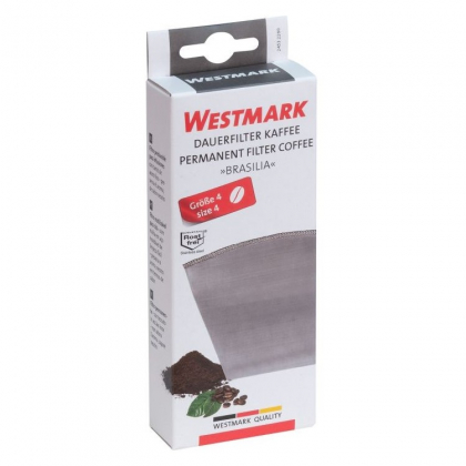 Ruostumattomasta teräksestä valmistettu suodatinKorvaa kertakäyttöiset suodatinpaperitAstianpesukoneen kestäväWestmarkin ruostumattomasta teräksestä valmistetun kahvinsuodattimen ansiosta kertakäyttöiset suodatinpussit ovat historiaa. Uudelleenkäytettävää kahvinsuodatinta käytetään aivan kuten tavallista paperista suodatinpussia, mutta se voidaan pestä astianpesukoneessa ja sitä voidaan käyttää yhä uudelleen ja uudelleen.Kahvinsuodatin on valmistettu ruostumattomasta teräksestä. Toisin kuin kovat ja kiinteät metallisuodattimet, tämä kahvinsuodatin on valmistettu kudotuista teräslangoista, jotka tekevät suodattimesta pehmeän ja joustavan. Suodatinta voi siksi säilyttää kokoontaitettuna keittiön kaapissa.Uudelleenkäytettävä suodatin on sekä käytännöllinen että taloudellinen valinta. Kertakäyttöisiä suodatinpusseja ei enää tarvita ja kotona on aina suodatin valmiina.Metallinen suodatin saattaa tehdä kahvin mausta voimakkaamman ja vivahteikkaamman. Syynä on se, että metallisen suodattimen läpi virtaa enemmän kahviuutetta, joka voimistaa kahvin makua. Ruostumattomasta teräksestä ei irtoa metallista makua kahviin.Suodatinta on saatavana kahdessa koossa.Koko 2: 15 cm x 8,5 cm x 0,5 cmSopii pienille keittimille (1–6 kupin keittimet).Koko 4: 16,5 cm x cm x 0,5 cmSopii normaalikokoisiin kahvinkeittimiin. Enintään 12 kupillista suodatinkahviaRuostumattomasta teräksestä valmistettu kahvinsuodatin on saksalaisen Westmarkin valmistama. Westmark on50-luvulta lähtien kehittänyt laadukkaita, käytännöllisiä ja toimivia keittiötarvikkeita.Kahvinsuodatin on helppo puhdistaa ja se voidaan pestä astianpesukoneessa.5 vuoden takuu