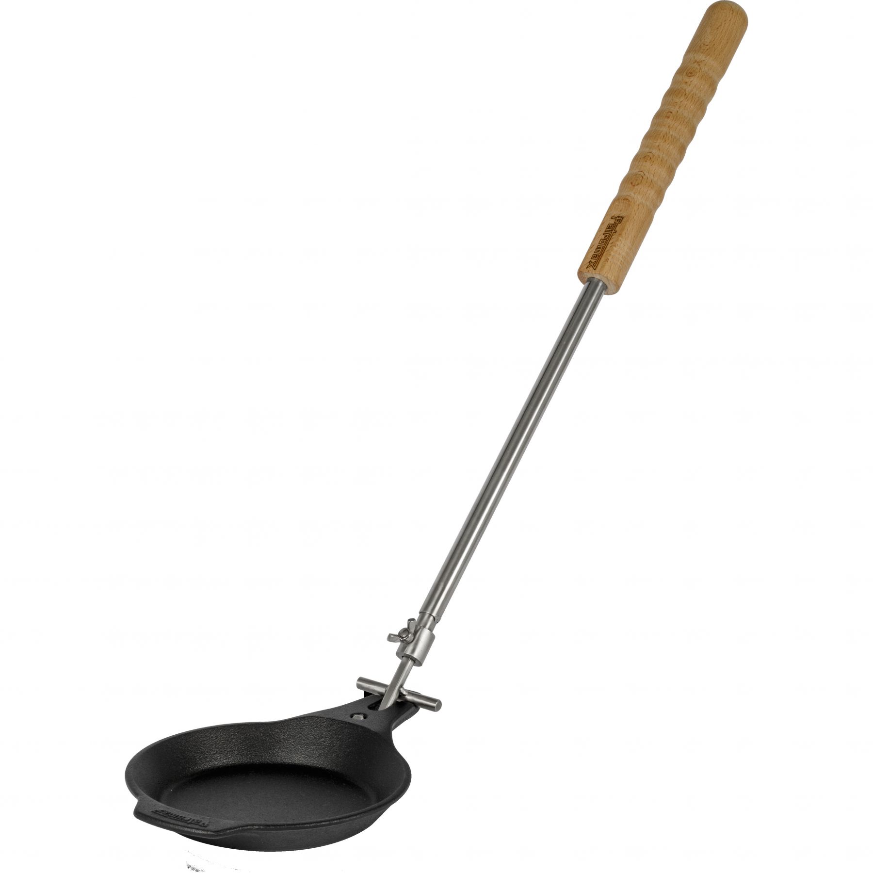 Petromax Campfire Skillet on suunniteltu ruoanvalmistukseen suoraan leirinuotiolla. Irrotettava teleskooppikahva takaa turvallisen etäisyyden liekkeihin, ja kestävä valurauta takaa tasaisen lämmönjakautumisen ja luonnollisen tarttumattomuuden. Teleskooppikahva voidaan säätää haluttuun pituuteen optimaalisen hallinnan ja turvallisuuden varmistamiseksi. Kun pannu on hiilloksen päällä, kahva voidaan helposti irrottaa. Pannun muotoilu mahdollistaa tarjoilun suoraan pannulta, ja se on käyttövalmis ilman ennakkovalmisteluja. Puhdistaminen on helppoa ketjupuhdistusaineella ja vedellä, ja pannun kestävyyden säilyttämiseksi suositellaan käytettäväksi erityistä valurautaöljyä. Tekniset tiedot ja ominaisuudet: - Materiaali: valurauta, ruostumaton teräs, puu - Irrotettava ja säädettävä teleskooppikahva - Luonnollinen tarttumaton vaikutus - Optimaalinen lämmön jakautuminen - Helppo puhdistaa - Mitat (korkeus x leveys x syvyys): 42 x 62 x 17 cm - Pannun paino: noin 990 g - Kokonaispaino: noin 1460 g - Kapasiteetti: max. 0,3 l