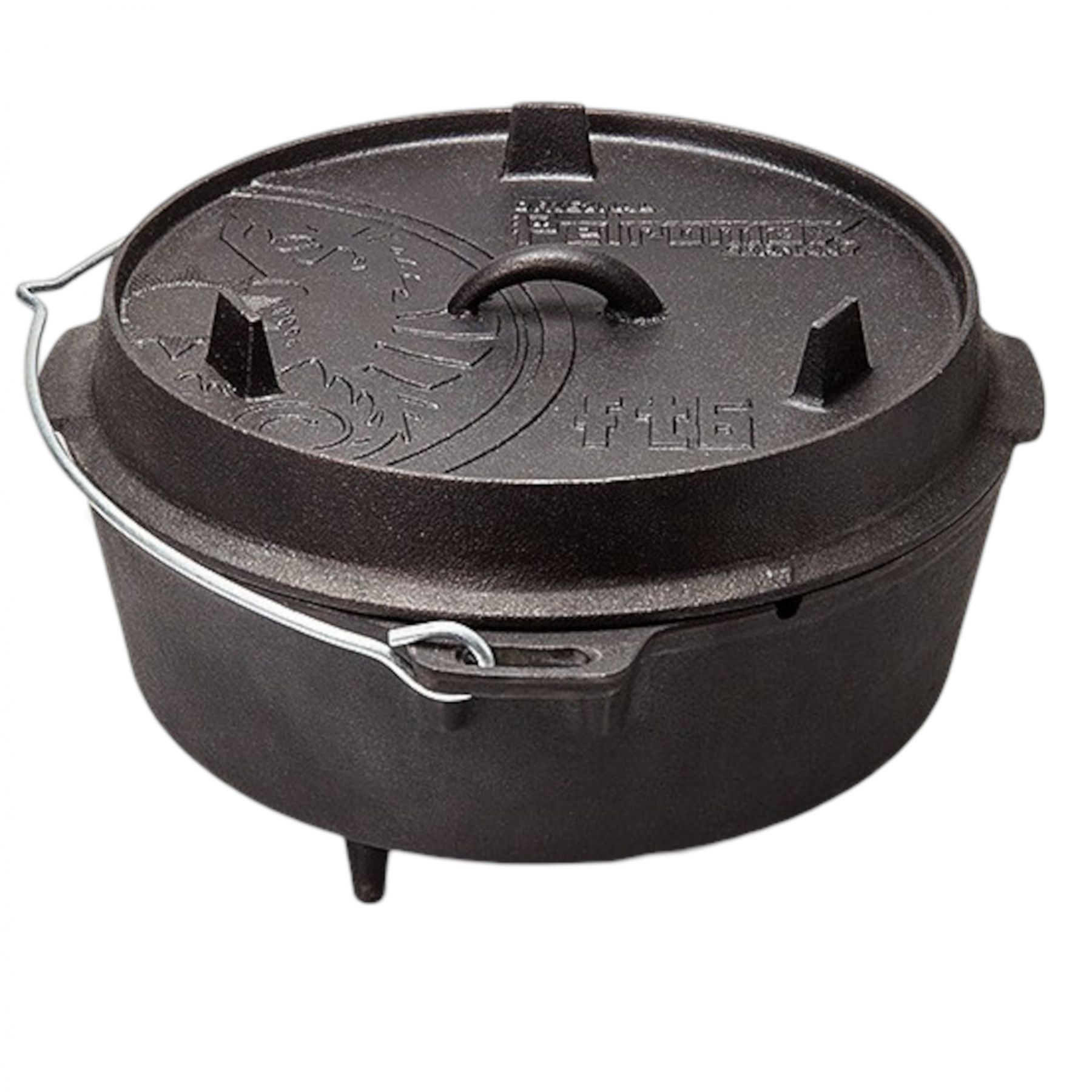 Petromaxin valurautapata Dutch Oven ft4.5 on monipuolinen kattila, joka soveltuu sekä ulko- että sisätiloissa ruoanlaittoon. Litteän pohjan ansiosta se sopii käytettäväksi avotulen päällä, hellalla tai uunissa. Kattila sopii erinomaisesti sekä vihannesten että lihan kypsentämiseen, ja siinä on helposti ruokaa 2-5 hengelle, joten se sopii erinomaisesti perheelle tai kaveriporukoille. Tekniset tiedot ja ominaisuudet: Täydellinen ulkokeittämiseen Sopii leirinuotiolle, liedelle ja uuniin Kapasiteetti 2-5 hengelle Esikäsitelty pinta välitöntä käyttöä varten Säilyttää ruoan ravintoaineet Kantokahva helpottaa kuljetusta Lämpömittarin reikä kannessa Kantta voidaan käyttää lautasena tai kulhona Suurin tilavuus: 4,5 litraa Astian tilavuus: 3,5 litraa Kannen tilavuus: 1,5 litraa Paino: 7,6 kg Materiaali: valurauta Mitat: 14,6 x 31,1 x 27 cm