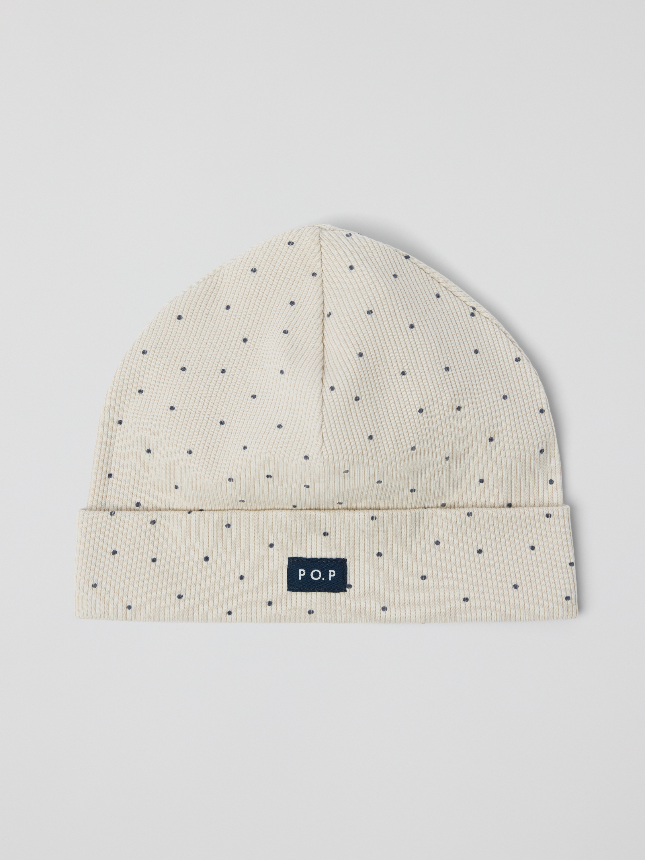 Ribbipipo pehmeästä Tencel™ lyocellin ja luomupuuvillan sekoituksesta – täydellinen ensimmäisestä päivästä alkaen! Pipossa on erityisen pehmeät saumat, jotka ovat hellävaraiset herkkää ihoa vasten. Taitoksen avulla pipon kokoa voi säätää vauvan pään koon mukaan. Ominaisuudet: • Erittäin pehmeät ja litteät saumat<br/>Pipo pilkullinen baby