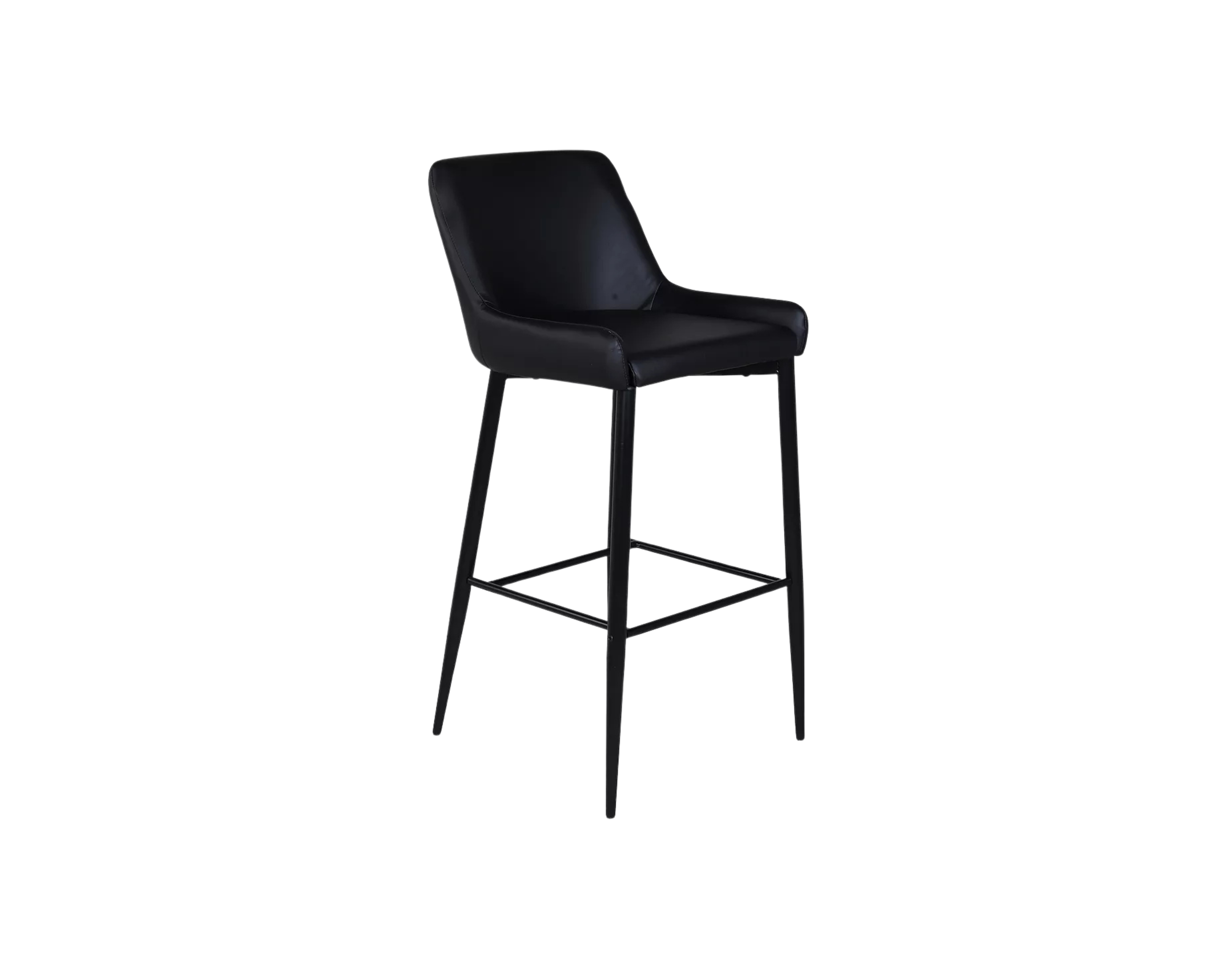 Tyylikäs ja mukava baarituoli metallisilla jaloilla ja mustalla tekonahkaverhoilulla. Myydään 2 kpl settinä.