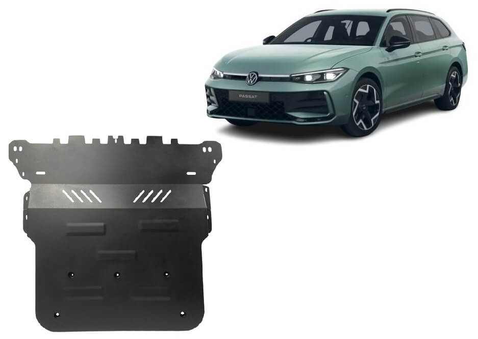 Pohjapanssari Volkswagen Passat (2024➟), moottori, vaihdelaatikko, jäähdytin, ohjausvaihde, terästä