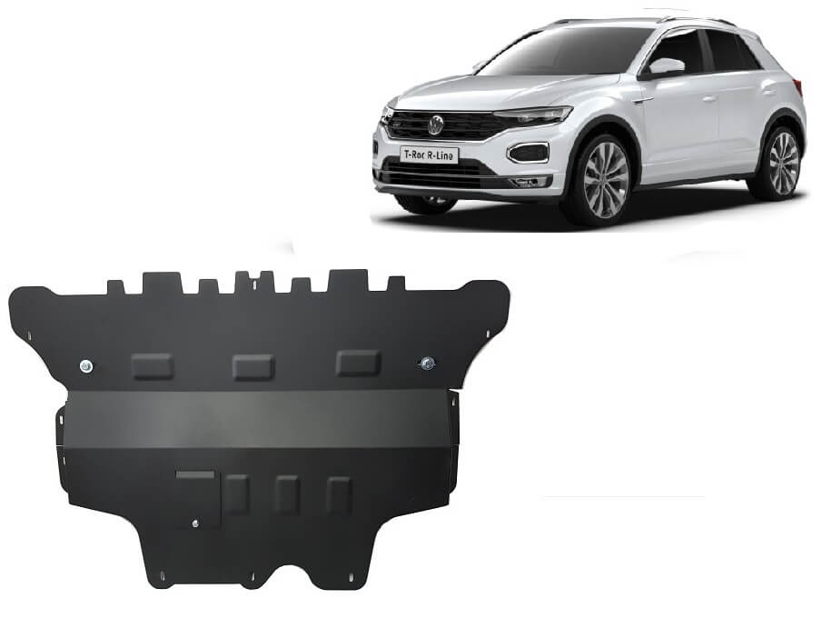 Pohjapanssari Volkswagen T-Roc manuaali (2017➟), moottori, vaihdelaatikko, jäähdytin, etupuskuri, terästä