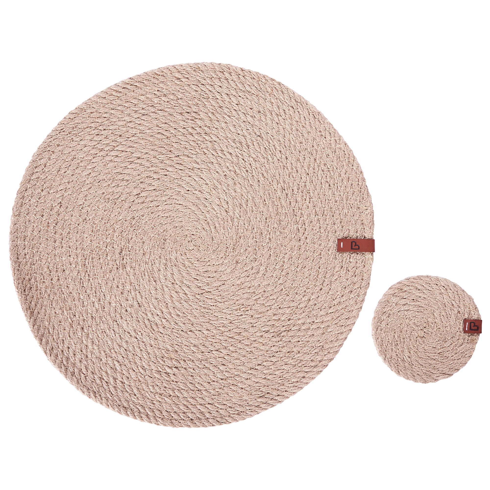 Pöytätabletti- ja lasinalussetti 6+6 MUNTRIES Luonnonväri Juutti