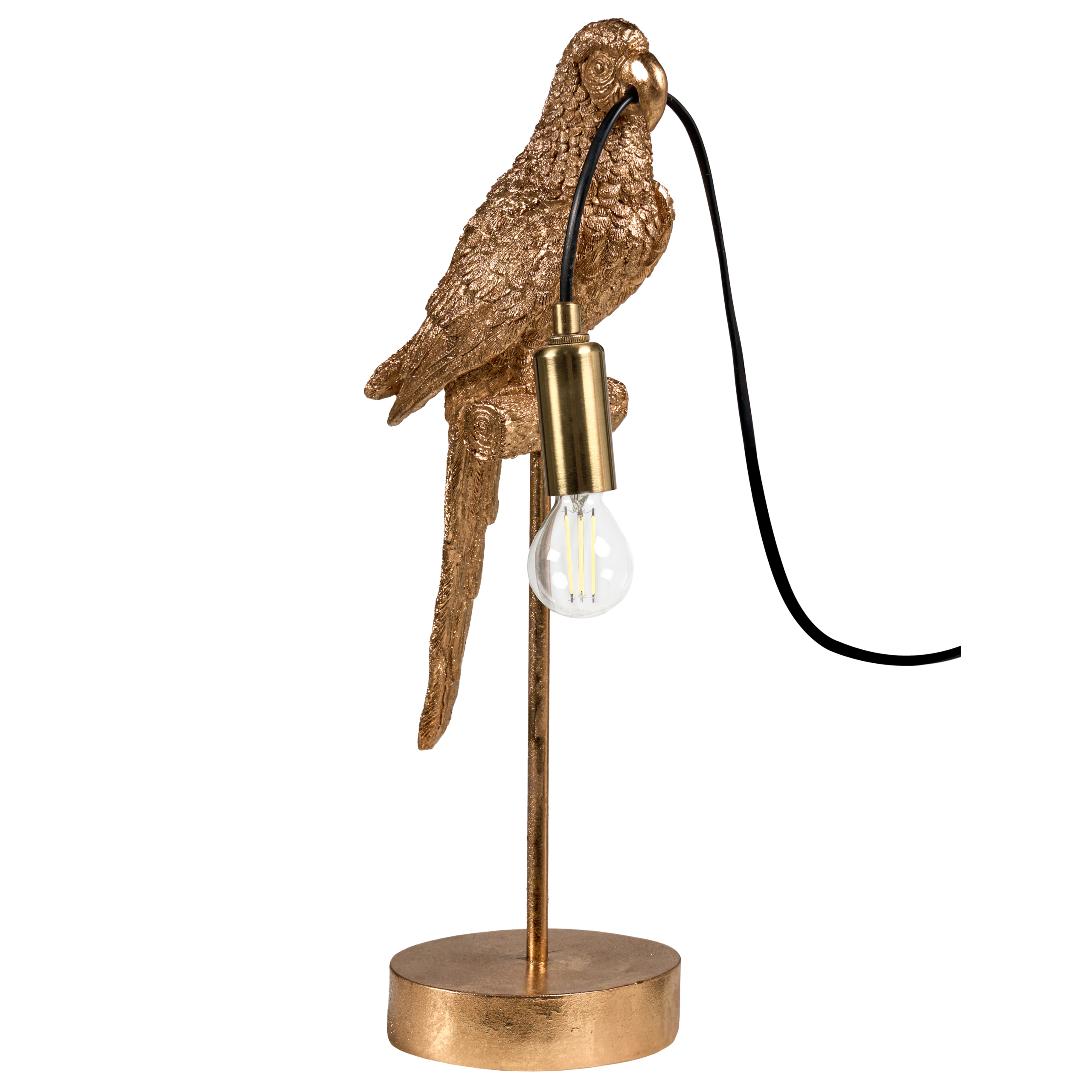 Koristeellinen papukaijavalaisin. Lisää tilaan eloisa aksentti tällä näyttävällä, käsintehdyllä papukaijan muotoisella pöytävalaisimella. Koristeellista viehätystä ja käytännöllisyyttä yhdistävä valaisin toimii sekä käytännöllisenä valonlähteenä että katseita keräävänä koriste-esineenä. Kullanvärinen viimeistely antaa valaisimelle tyylikkään ja eksoottisen ilmeen, ja vankka materiaali takaa kestävän laadun.Tuotetiedot: Tuotetyyppi: Pöytävalaisin Tyyli: Glamour Pääväri: Kulta Materiaali: Synteettinen materiaali Päämateriaali: Polyhartsi Teho: 6 W Viimeistely: Käsinmaalattu Hehkulampputyyppi: 1 Jännite: 230 V (50 Hz) Mitat: Alustan mitat: 14x14 Johdon pituus: 190 cm Syvyys: 14 cm Leveys: 17 cm Korkeus: 46 cm Paino: 1 kg Hintaan sisältyy: 1 x Pöytävalaisin, Ei sisällä polttimoa Ominaisuudet: Sisältää on/off-katkaisimen, Sopii sekä makuu- että olohuoneeseen, Luo kodikkaan tunnelman mihin tahansa huoneeseen, Ainutlaatuinen käsintehty kappale, Korkeatasoiset materiaalit Kokoaminen: Osittain koottava. 5-15 min. Lisätiedot: Valaisin on tarkoitettu A-G:n energialuokan polttimoille, asteikolla A (energiatehokkain) G (vähiten energiatehokkain). Soveltuu LED-, halogeeni- ja energiatehokkaille polttimoille., Huomaathan, että jokainen tuote on käsintehty ja ainutlaatuinen, joten sävy ja koko saattavat vaihdella hieman. Hoito-ohjeet: Polyhartsi: 1.Puhdista miedolla puhdistusaineella ja pehmeällä liinalla, pyyhi sitten kuivaksi.