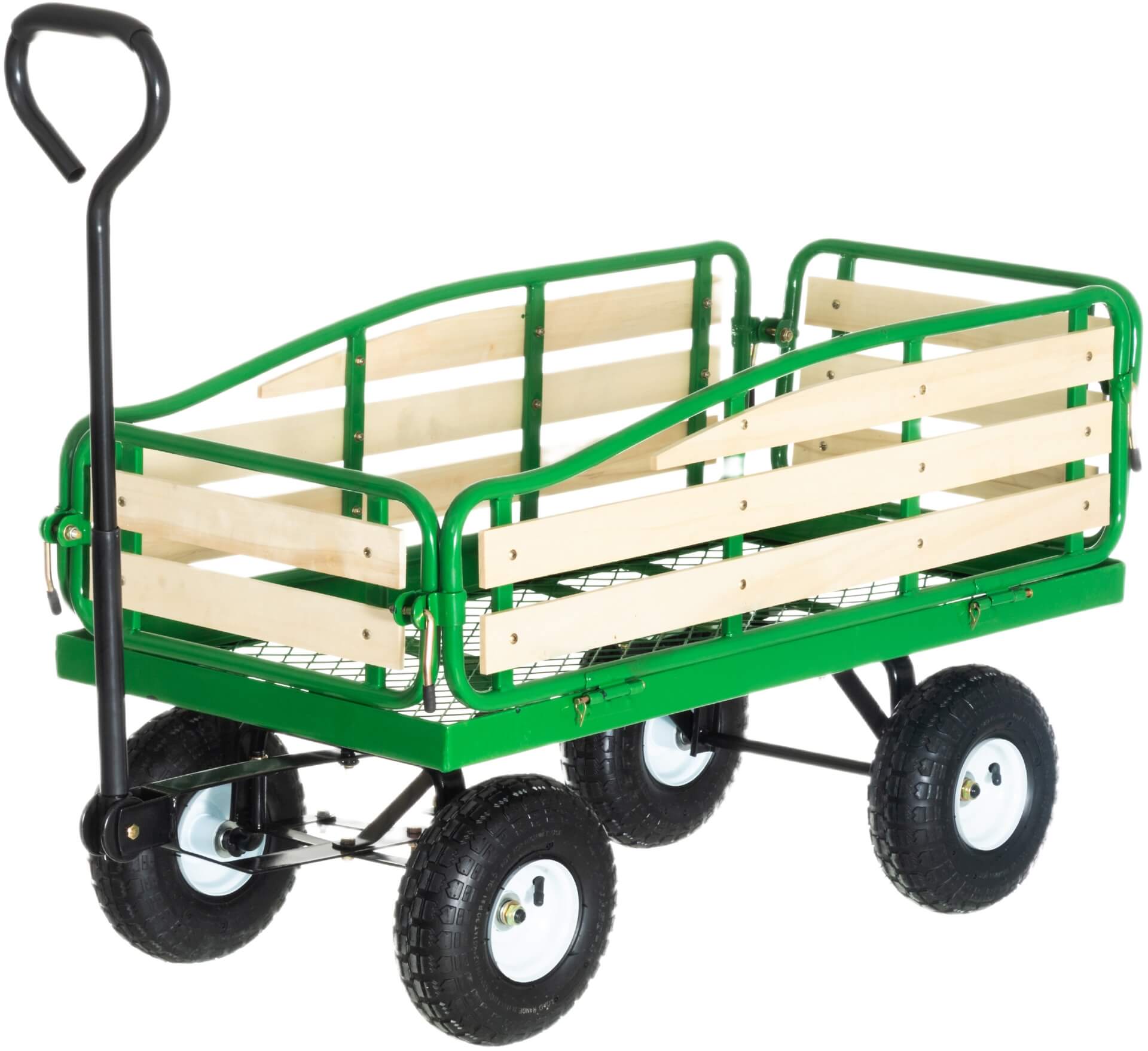 Vankka puutarhakärry, jolla kuljetat helposti multaa, kasveja, työkaluja ja tarvikkeita. Laidat saa taitettua alas tai irrotettua kokonaan, ja mukana tuleva muovialusta muuttaa ritiläpohjan umpipohjaksi. Kärry liikkuu vaivatta myös epätasaisessa maastossa.