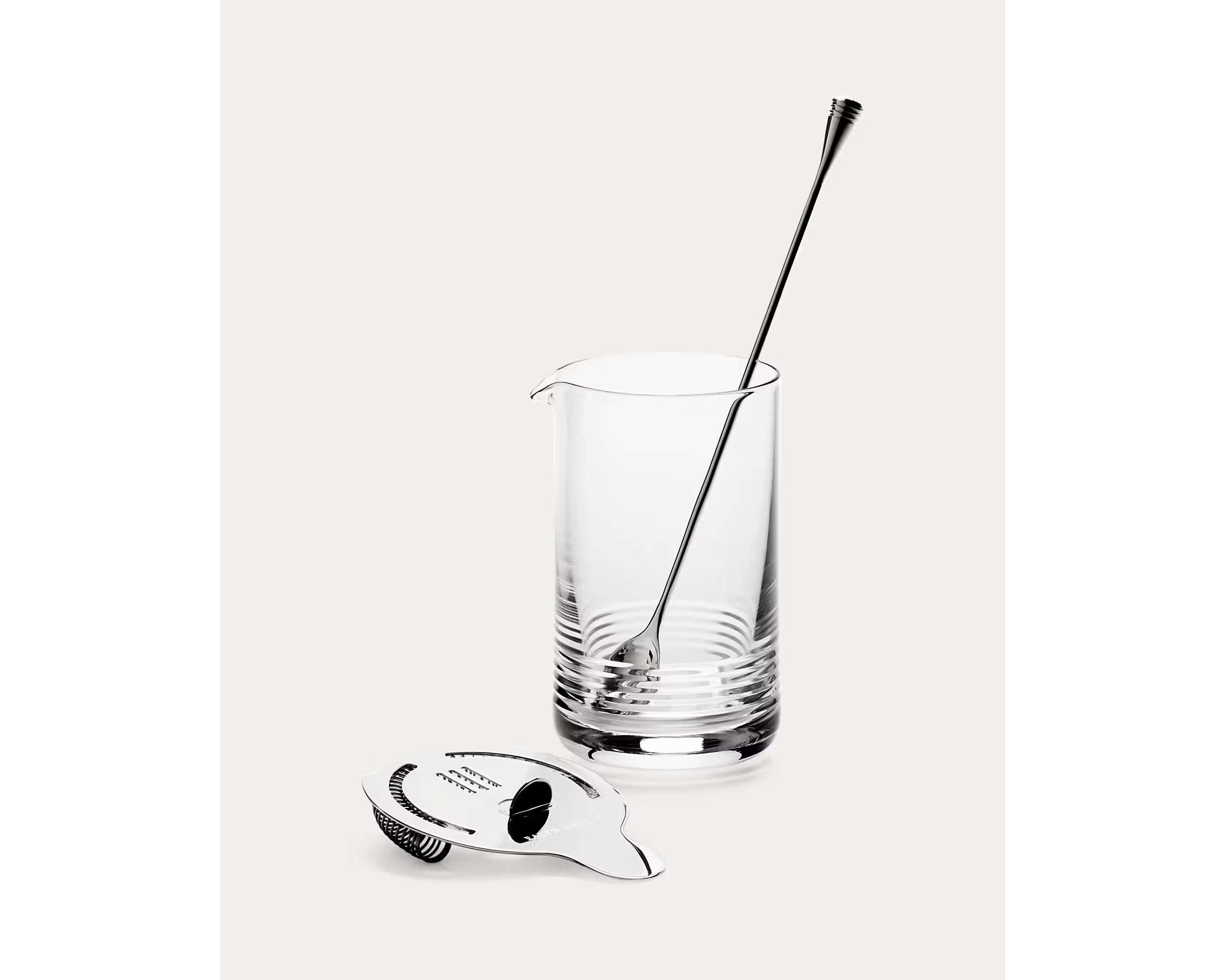Bentley-baaritarvikesarjaan kuuluva kristallinen sekoituslasi toimitetaan hopeoidusta messingistä valmistetun sekoituslusikan ja siivilän kanssa – täydellinen setti martinin tai klassisen Manhattanin valmistukseen. Kirkas kristallilasi tuo kattaukseen hienostunutta ilmettä, ja hopeoitu viimeistely tekee työvälineistä ajattoman tyylikkäät. Setti sisältää sekoituslasin, sekoituslusikan ja siivilän. Valmistettu Slovakiassa ja pakattu eleganttiin “Ralph Lauren” -kohokuvioituun lahjarasiaan. Pakkauksessa kolhu. Käyttämätön.