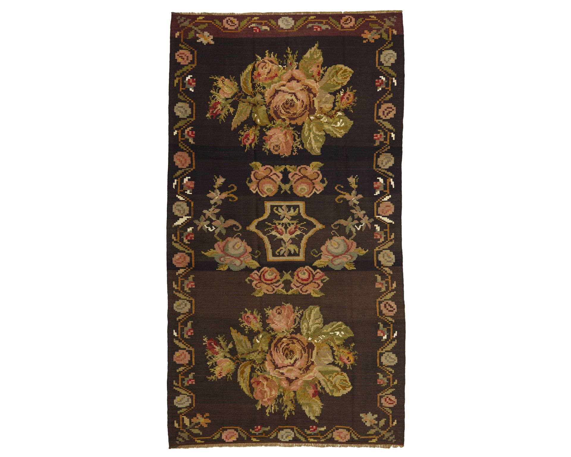 Rose Kelim -matot ovat käsinkudottuja villamattoja Moldovasta ja Pohjois-Turkista. Ne valmistetaan erityisellä tasokudontatekniikalla, joka antaa pinnalle ohuen, lähes huopamaisen tuntuman. Matot ovat usein iältään hieman vanhempia ja ne ovat melko harvinaisia. Niiden tumma pohjaväri korostaa rehevää, moniväristä kukkakuviota ja antaa matoille tunnistettavan luonteen. Käyttämätön.