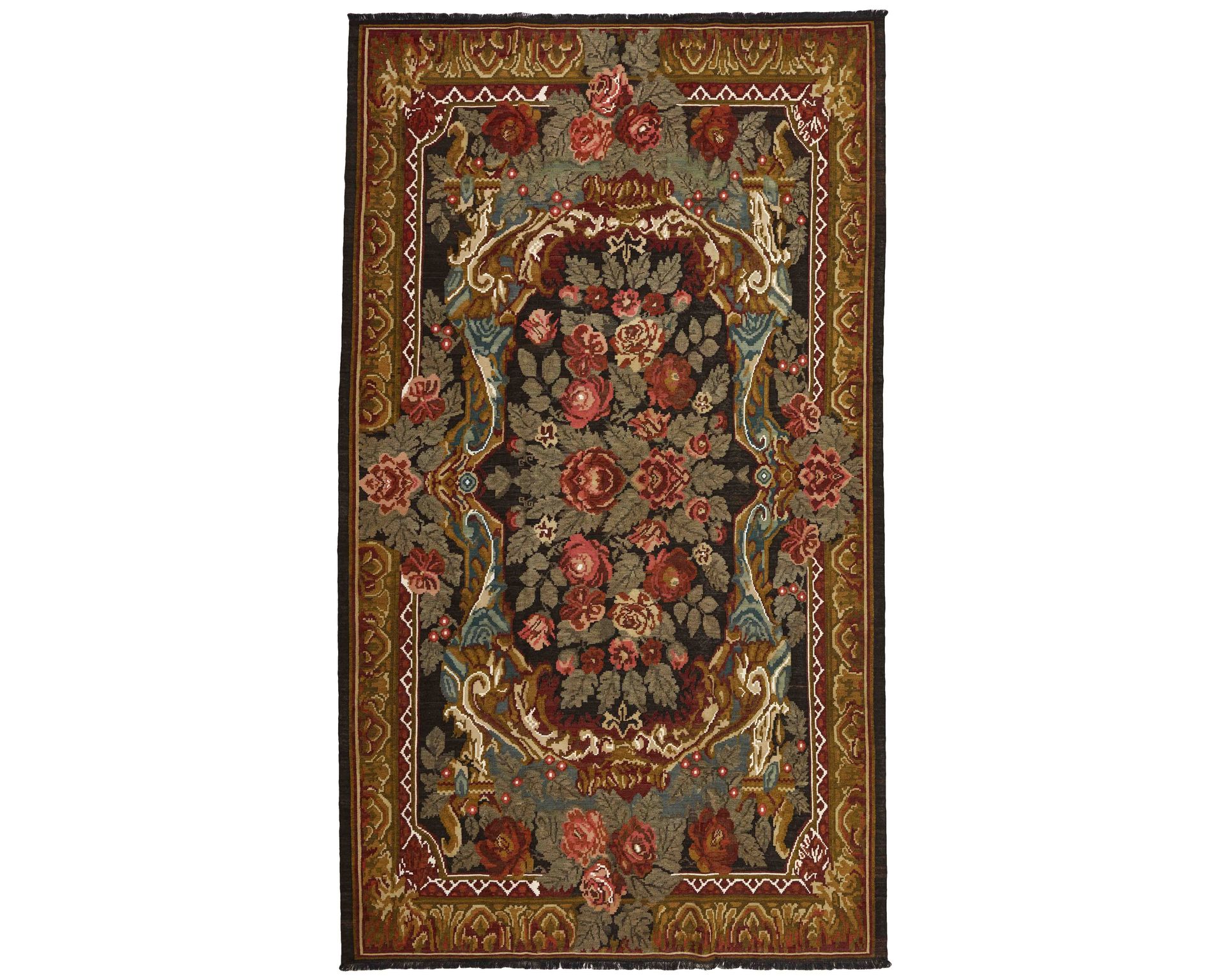 Rose Kelim -matot ovat käsinkudottuja villamattoja Moldovasta ja Pohjois-Turkista. Ne valmistetaan erityisellä tasokudontatekniikalla, joka antaa pinnalle ohuen, lähes huopamaisen tuntuman. Matot ovat usein iältään hieman vanhempia ja ne ovat melko harvinaisia. Niiden tumma pohjaväri korostaa rehevää, moniväristä kukkakuviota ja antaa matoille tunnistettavan luonteen. Käyttämätön.