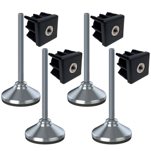Ruostumaton jalka 12x150x80mm, jalustassa kumityyny + insertit 30x30x1.2mm - 4 kpl:n sarja.