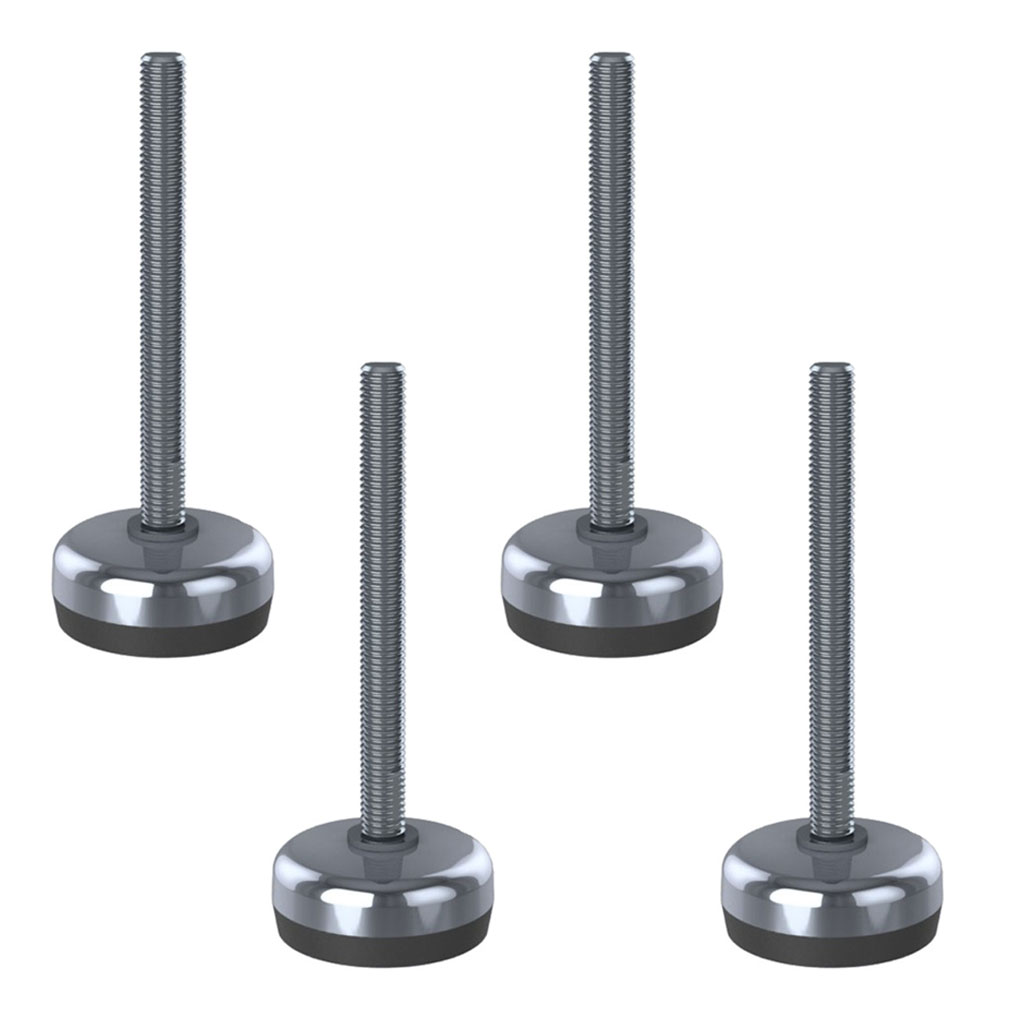 Ruostumaton tasoitusjalka M10x100, 50 mm:n pohja ja tärinänvaimennustyyny, kantavuus 1400 kg – 4 kpl:n sarja