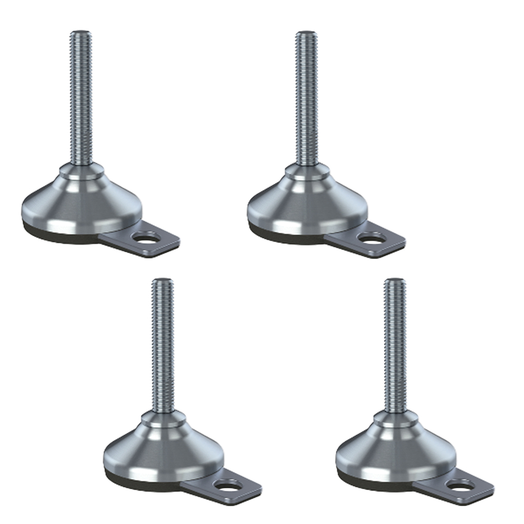Ruostumattomasta teräksestä (materiaalinumero 1.4301, AISI304/A2) valmistettu, kokonaan kierteitetty tasoitusjalka.10°:n kääntökulma epätasaisille lattioille.Itsevaluvien pintojen ansiosta puhdistusvaiva on minimaalinen.Jalusta on suunniteltu kiinnitettäväksi lattiaan kiinnityslevyn avulla. Jalustanalla on vulkanoitu, FDA-hyväksytty, tärinää vaimentava ja liukumaton kumityyny.Suunnittelu ja patentti suojattu.Kantavuus 3600 kg neljän kappaleen sarjassa (900 kg per jalka).