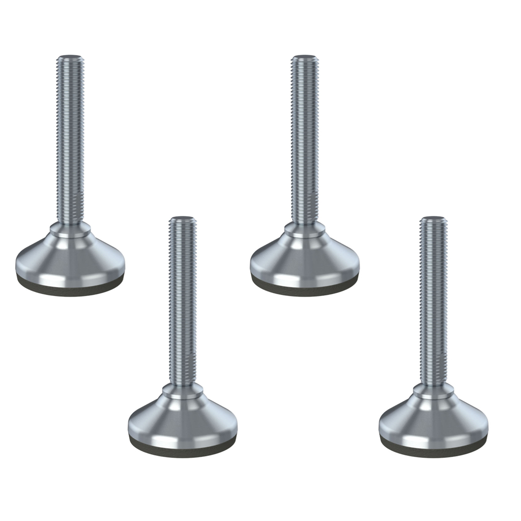Ruostumaton tasoitusjalka M16x100, 65 mm:n pohja ja tärinänvaimennustyyny, kantavuus 3600 kg – 4 kpl:n sarja