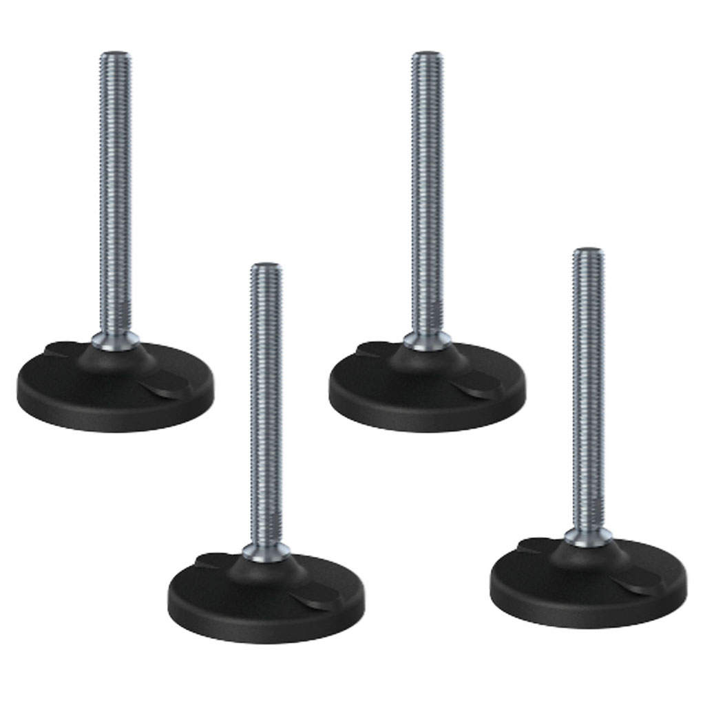 Ruostumaton tasoitusjalka M16x150, 100 mm:n muovialusta, rei'itetty, kantavuus 6000 kg – 4 kpl:n sarja