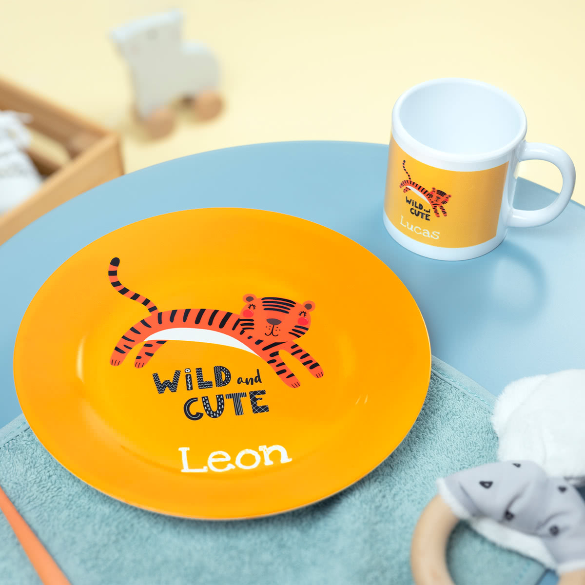 Tee tavallisista arkiruokailuista erityisiä tällä personoidulla lasten ruokailusetillä! Lisää lapsen nimi mukiin ja kuva lautaselle luodaksesi täysin ainutlaatuisen lahjan. Tämä muovinen muki- ja lautassetti on kestävä, konepestävä ja suunniteltu erityisesti pienten kätten käytettäväksi. Täydellinen personoitu lahja syntymäpäiväksi, ristiäisiin tai hauskaksi yllätykseksi. Tutustu suloisiin malleihin ja tee jokaisesta ateriasta ikimuistoinen!