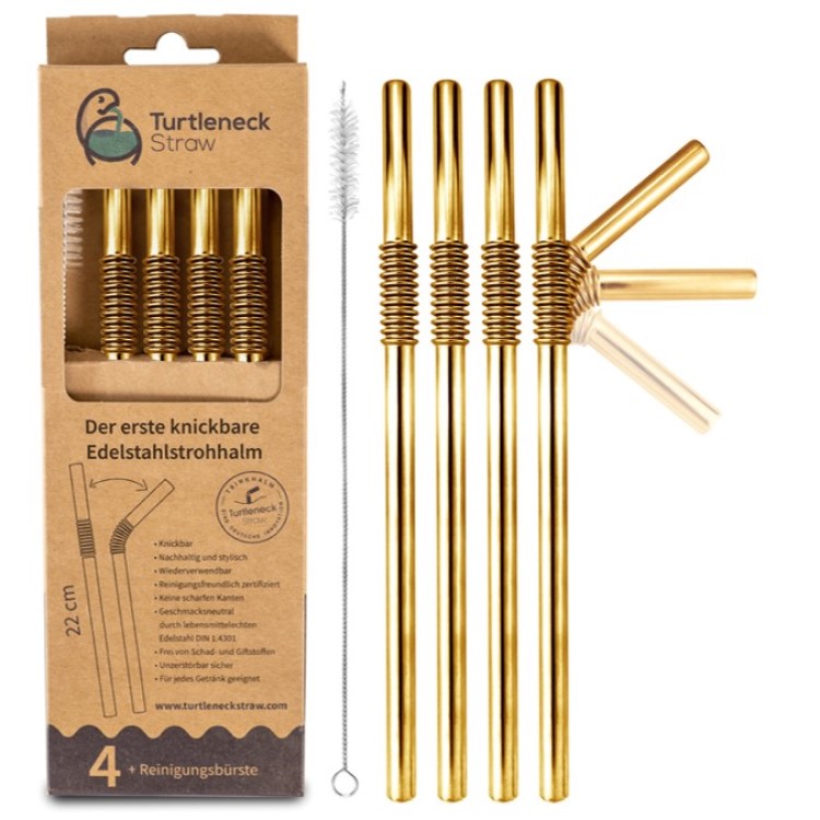Taivutettavat pillit ruostumattomasta teräksestäPuhdistusharja sisältyy pakkaukseenMyydään 4- ja 8-pakkauksenaTurtleneck Straws -pillit ovat tyylikkäitä ja uudelleenkäytettäviä ruostumattomasta teräksestä valmistettuja pillejä, joiden yläosa on taivutettava. Metallipillit näyttävät hyvältä juomalaseissa, mehulaseissa ja cocktaileissa. Taivutettavan yläosan ansiosta pillillä on helppo juoda suoraan lasipulloista ja limsatölkeistä.Kestävät metalliset pillitMetallisia pillejä voidaan käyttää sekä kuumissa että kylmissä juomissa. Ne eivät ime itseensä juomien makua tai aromia. Metallipillit ovat kiinteitä ja kestäviä, eivätkä pehmene paperipillien tapaan.Tyylikkäät pillit viimeistelevät juomanNämä tyylikkäät metalliset pillit ovat hauska lisävaruste juhliin ja syntymäpäiville. Pillejä on saatavilla useissa eri väreissä, ja ne sopivat erilaisiin laseihin ja juomiin, kuten cocktailien, jääkahvien, smoothieiden ja kuuman mustikkakeiton nauttimiseen.Käytännölliset, uudelleenkäytettävät pillitKestävät metallipillit ovat ympäristöystävällinen vaihtoehto kertakäyttöisille muovi- tai paperipillille, ja niitä voidaan käyttää yhä uudelleen. Pillit on valmistettu elintarvikehyväksytystä ruostumattomasta teräksestä, ja ne on helppo puhdistaa käytön jälkeen astianpesukoneessa tai mukana tulevalla puhdistusharjalla.Pillit myydään 4- ja 8-pakkauksessaMetallipillit myydään 4 tai 8 pillin settinä, ja niitä on saatavana useissa eri väreissä. Valitse kultaisten, hopeisten ja sateenkaaren väristen pillien väliltä. Jokaisessa pakkauksessa on mukana kapea puhdistusharja pilleille.TuotetiedotPituus: 22 cmMateriaali: Elintarvikehyväksytty ruostumaton teräs