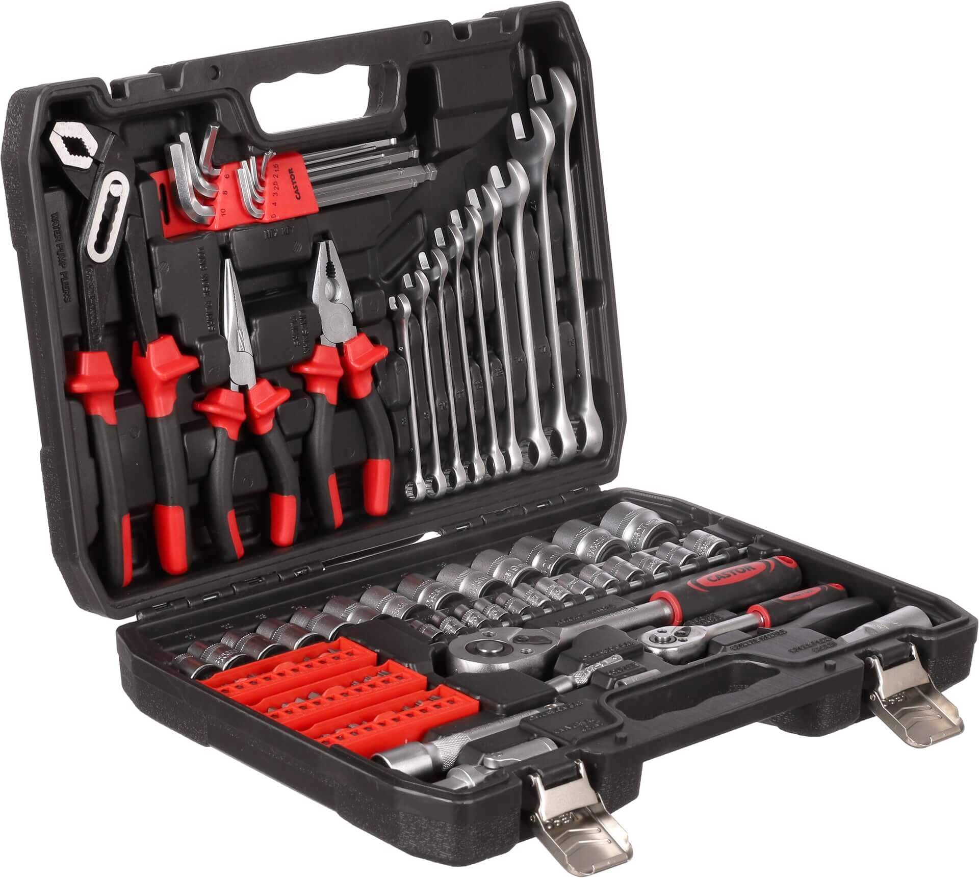 Castorin 86 osan työkalusarja kokoaa yhteen arjessa eniten tarvittavat työkalut: hylsyt sekä 1/4" että 1/2" koossa, kaksi räikkää, jatkovarsia ja niveliä, suuren määrä ruuvauskärkiä, kiintoavaimia sekä kolme erilaista pihdit. Tämä kokonaisuus kattaa esimerkiksi polkupyörän säädöt, kodinkoneiden pienet korjaukset, kodin laitteiden huollot ja huonekalujen kokoamisen.