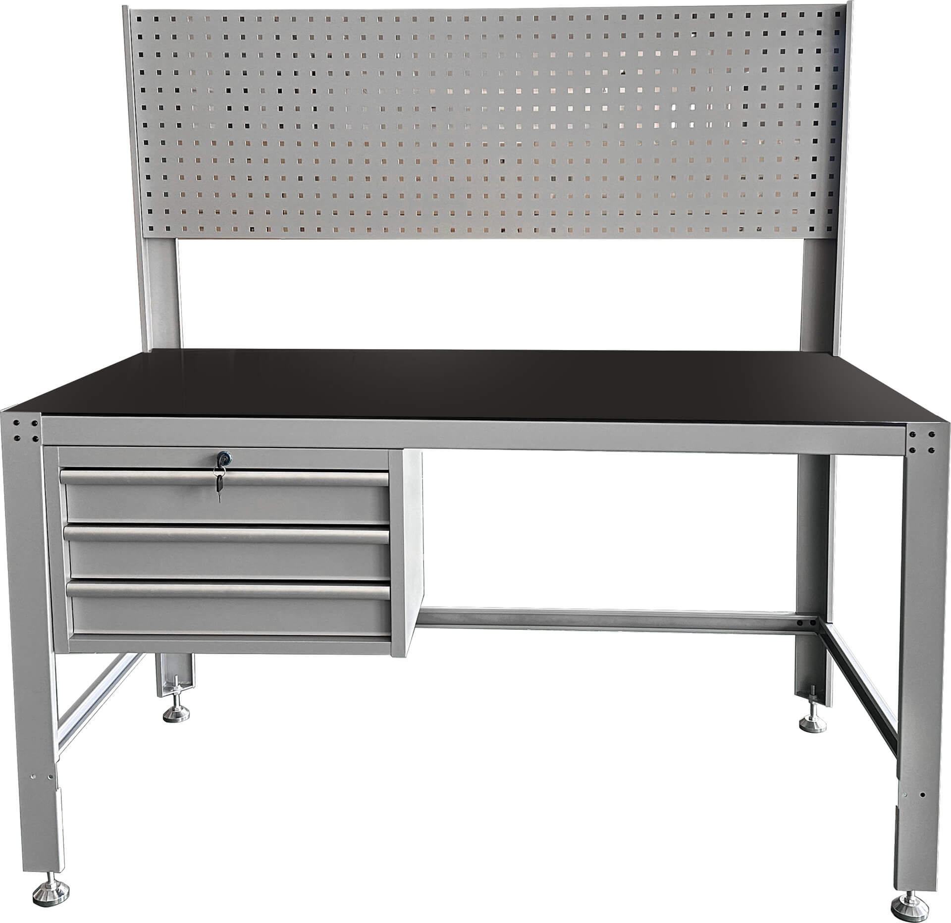 Tämä työpöytä on suunniteltu talliin, korjaamolle ja verstaalle, joissa tarvitaan kestävää ja järjestelmällistä työtilaa. Reikälevytausta pitää työkalut helposti saatavilla ja lukittava vetolaatikosto tarjoaa turvallisen säilytyspaikan pienemmille tarvikkeille. 1000 kg kantavuus mahdollistaa myös raskaiden laitteiden tai komponenttien käsittelyn pöydällä.