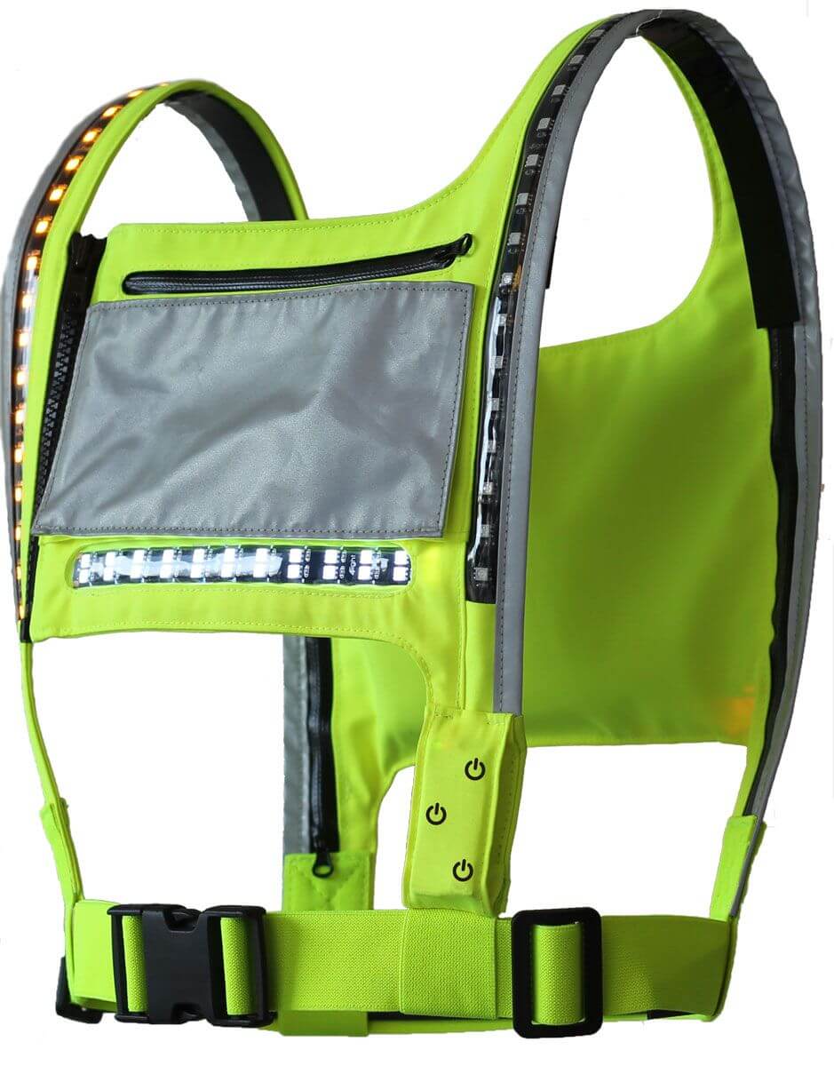 Valovaljaat Nova Standard keltainen, 4Light Valaistut valjaat ovat oiva valinta pimeille työmaille tai vaikka koiralenkille. Valjaat ovat suunniteltu niin, että sen valot osoittavat joka suuntaan. Valjaat varmistaa, että sinut nähdään ja sinä näet. Valot on suunniteltu niin, että näet joka suuntaan pimeissäkin olosuhteissa. Edessä rinnan korkeudella olevat valkoiset ledit toimivat työvaloina, keltaiset ledit menevät hartioiden yli selkäpuolelta rinnalle ja selkäpuolelta löytyvät punaiset ledit vaakatasossa. Valoja kontrolloidaan kahdella käyttönapilla. Tarvittavan virtansahan valot saavat mukana tulevasta virtapankista, joka pystyy pitämään valoja yhtäjaksoisesti päällä 15 tuntia. Virtapankille on oma tasku valjaiden selkäpuolella. Tasku löytyy myös valjaiden etupuolelta. Sinne voit säilöä itsellesi tärkeitä esineitä. Taskun sanotaan kestävän vettä.