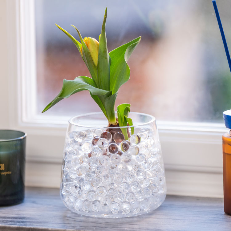 Superimukykyiset helmetTukevat ja kastelevat kukkiaKoristavat maljakon pohjallaPienen pienet helmet kasvavat vedessä isoiksi geelitäytteisiksi palloiksi, jotka sekä kastelevat että tukevat kasveja. Helmet sisältävät niin paljon vettä, että maljakoihin ei tarvitse lisätä vettä. Helmet säilyttävät kosteuden pitkään, joten kasveja voi kastella harvemmin.Helmet eivät ole myrkyllisiä. Älä syö tai kaada viemäriin, helmet laajenevat nesteessä. Käytetyt helmet voi lajitella sekajätteeseen. Säilytä tiiviissä pakkauksessa lasten ja eläinten ulottumattomissa. Helmien materiaali toimii samalla periaatteella kuin esimerkiksi vaippojen imukykyinen materiaali. Pakkauksessa on 10 g helmiä, joista tulee 1,5 litraa valmiita palloja. Pienen pussin sisältö kaadetaan vesikulhoon. Helmet alkavat laajentua vedessä ja ne ovat valmiita käytettäväksi 7–12 tunnin kuluttua.