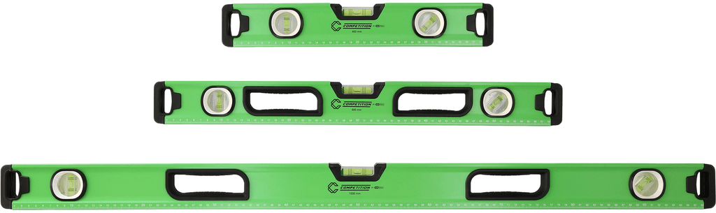 Competition-vesivaakasarja sisältää kolme käytetyintä vesivaakakokoa: 400 mm, 600 mm ja 1000 mm. Magneettinen alumiinirunko helpottaa työskentelyä esimerkiksi teräsrakenteiden kanssa. Tarkat akryylilasipullot ja ergonomiset kahvat tekevät sarjasta käytännöllisen työkalun rakennus-, asennus- ja remonttitöihin.
