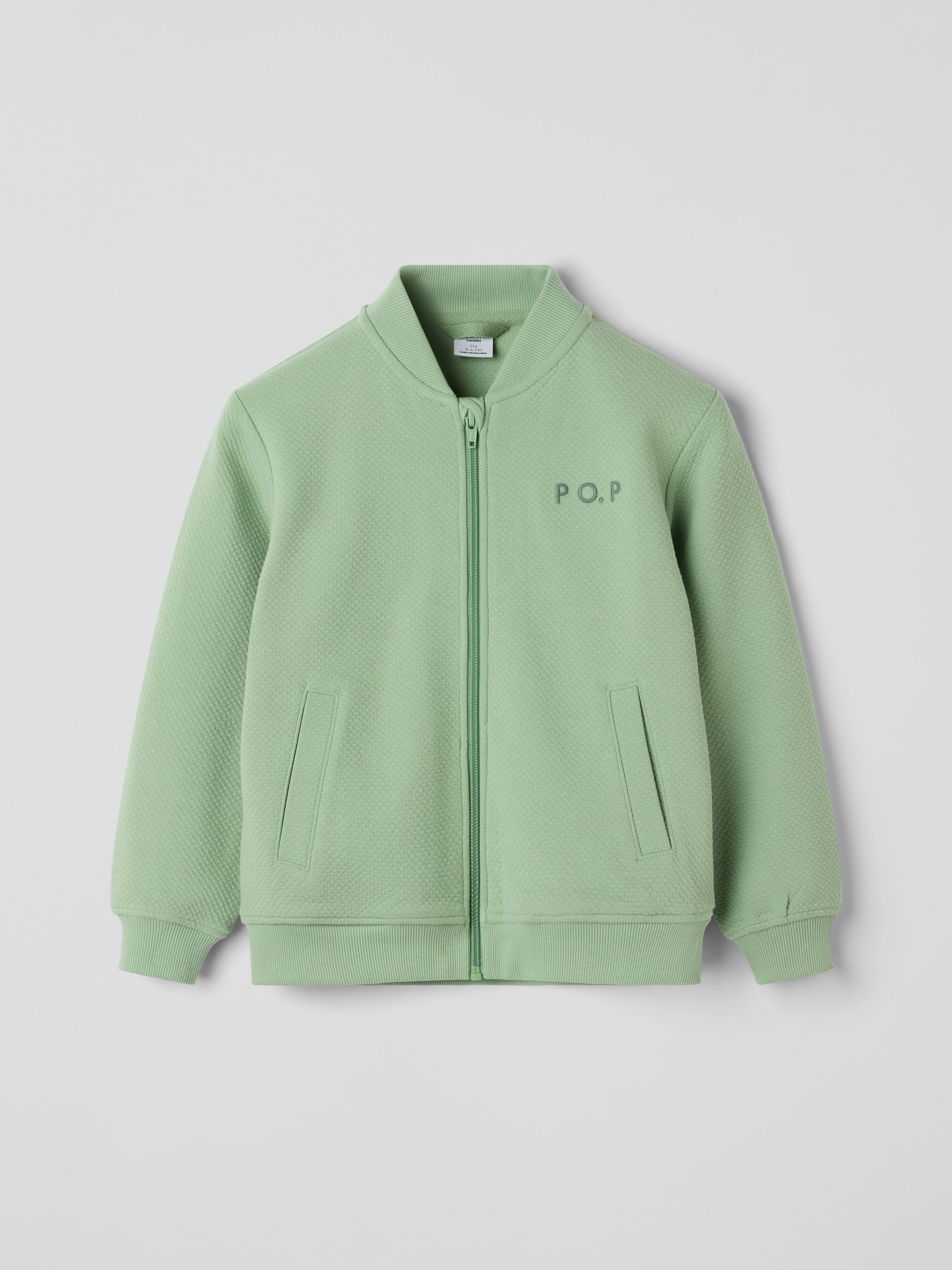 Takki pehmeästä vohvelikankaasta, valmistettu 100 % luomupuuvillasta. Takissa on pitkä vetoketju, resorikaulus ja resorit hihansuissa sekä helmassa mukavan istuvuuden takaamiseksi. Edessä on kaksi taskua. Rintamuksessa on pieni kirjailtu logo.<br/>Vetoketjullinen collegepaita