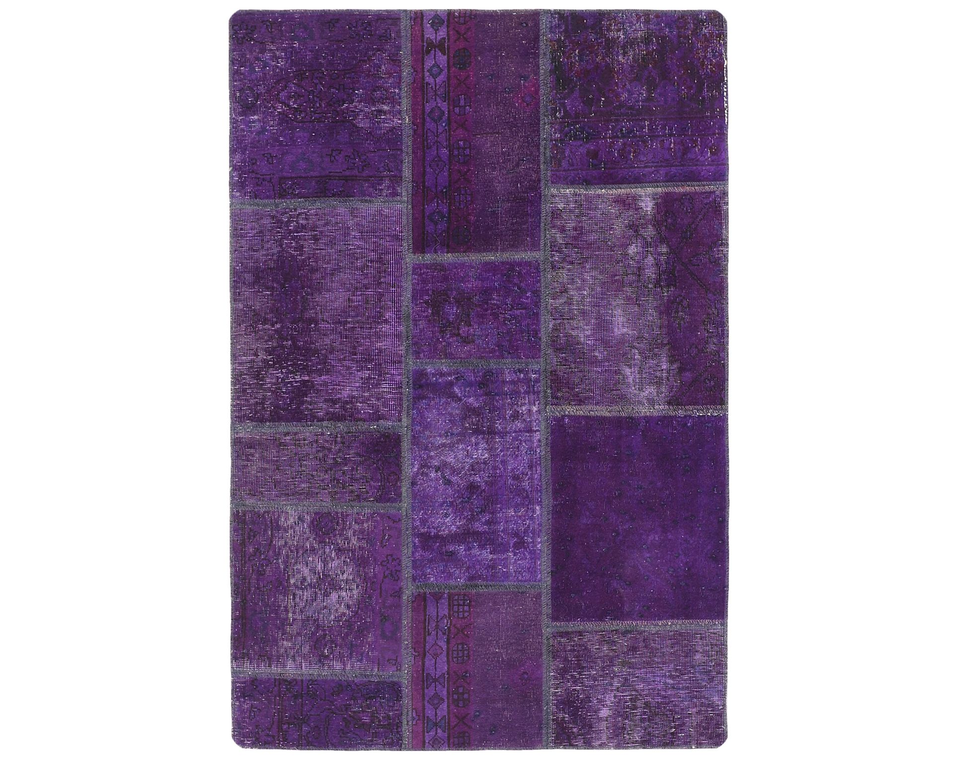 Vintage Royal Patchwork -matot valmistetaan persialaisista villamatoista, jotka on leikattu pienemmiksi paloiksi ja koottu uudelleen tilkkutäkkimäiseksi sommitelmaksi. Palat kivipestään ja värjätään uudelleen, jolloin alkuperäinen kuviointi jää hienovaraisesti näkyviin ja pinta saa pehmeän, kerroksellisen ilmeen. Vaihtelut sävyissä ja palojen kuvioissa tekevät jokaisesta Vintage Royal Patchwork -matosta ainutlaatuisen. Käyttämätön.