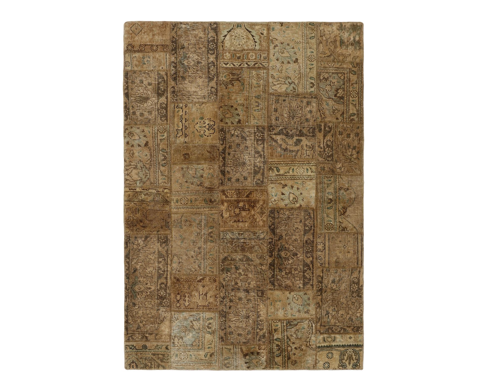 Vintage Royal Patchwork -matot valmistetaan persialaisista villamatoista, jotka on leikattu pienemmiksi paloiksi ja koottu uudelleen tilkkutäkkimäiseksi sommitelmaksi. Palat kivipestään ja värjätään uudelleen, jolloin alkuperäinen kuviointi jää hienovaraisesti näkyviin ja pinta saa pehmeän, kerroksellisen ilmeen. Vaihtelut sävyissä ja palojen kuvioissa tekevät jokaisesta Vintage Royal Patchwork -matosta ainutlaatuisen. Käyttämätön.